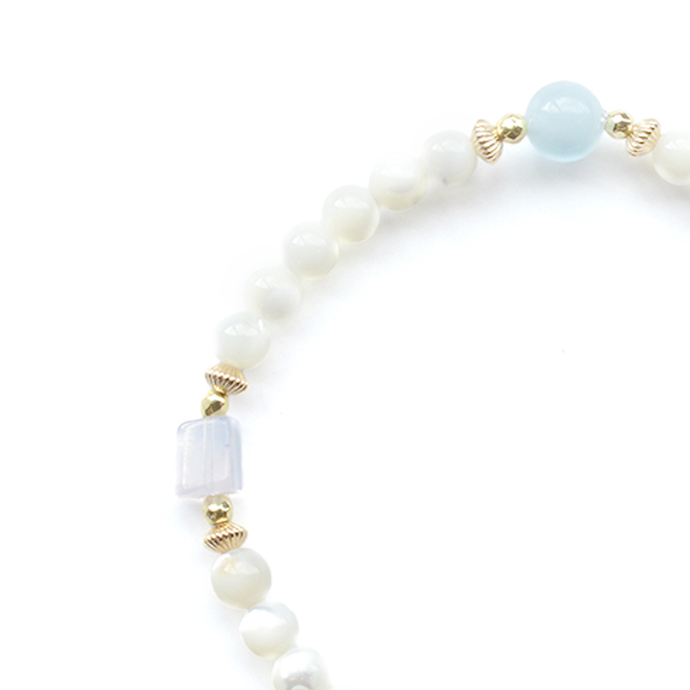 アクアマリン+マザーオブパールデザインブレスレット
