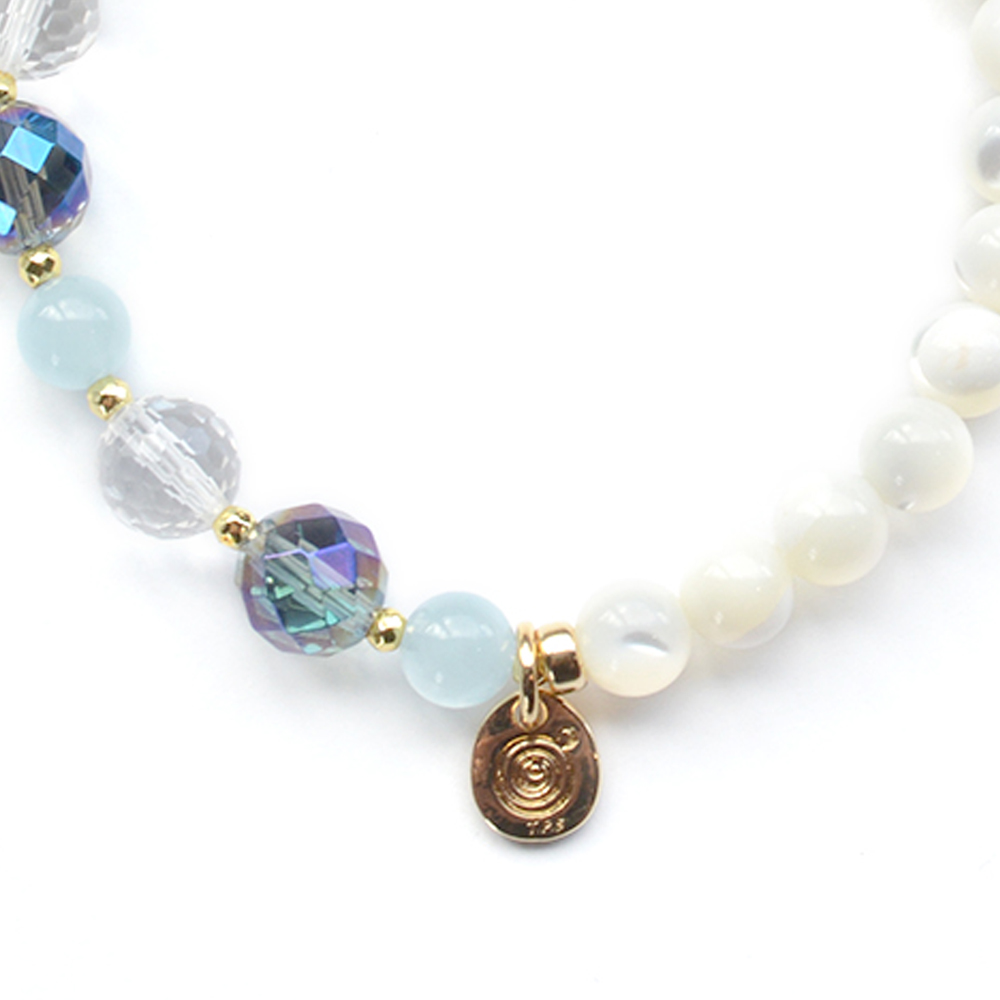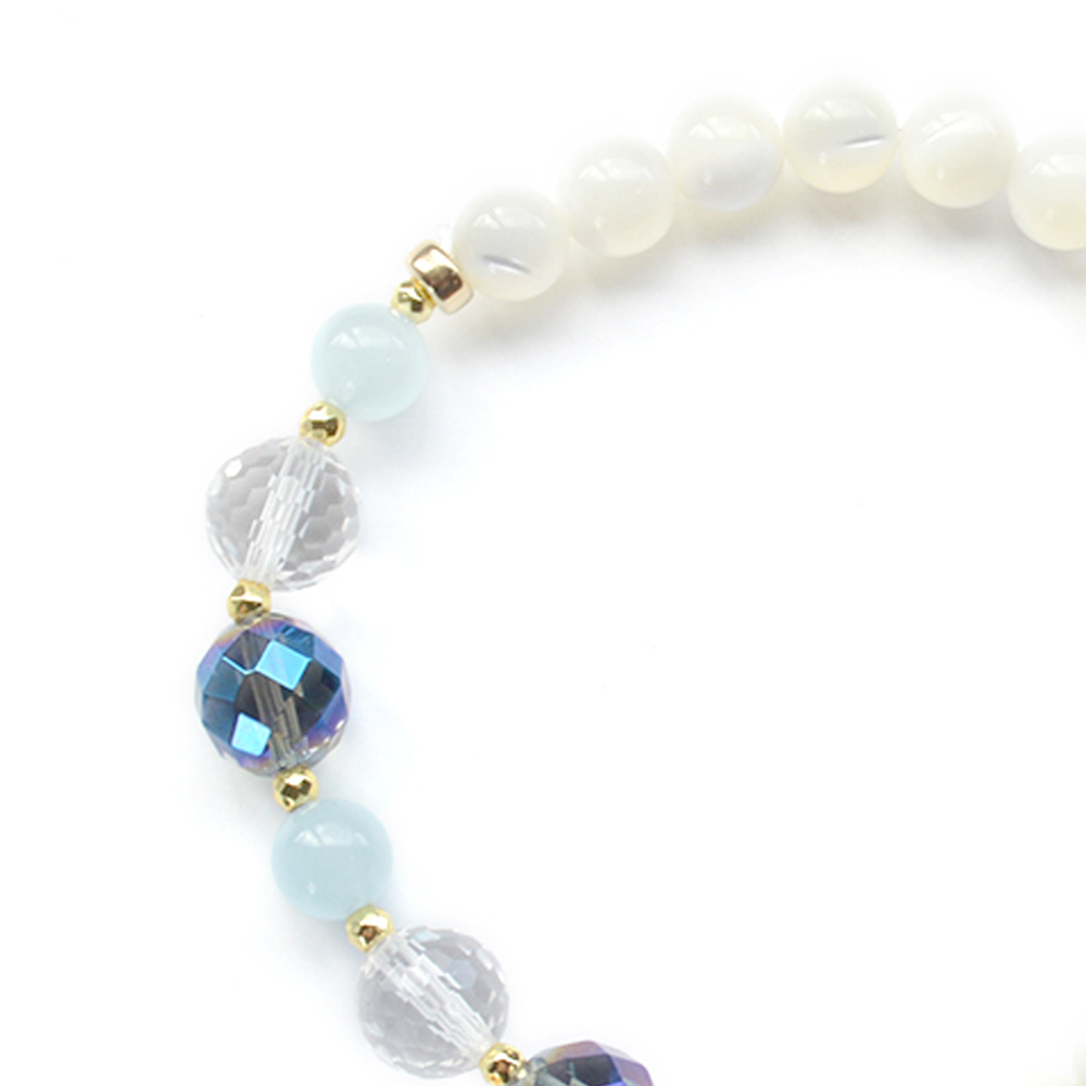 アクアマリン+マザーオブパールデザインブレスレット