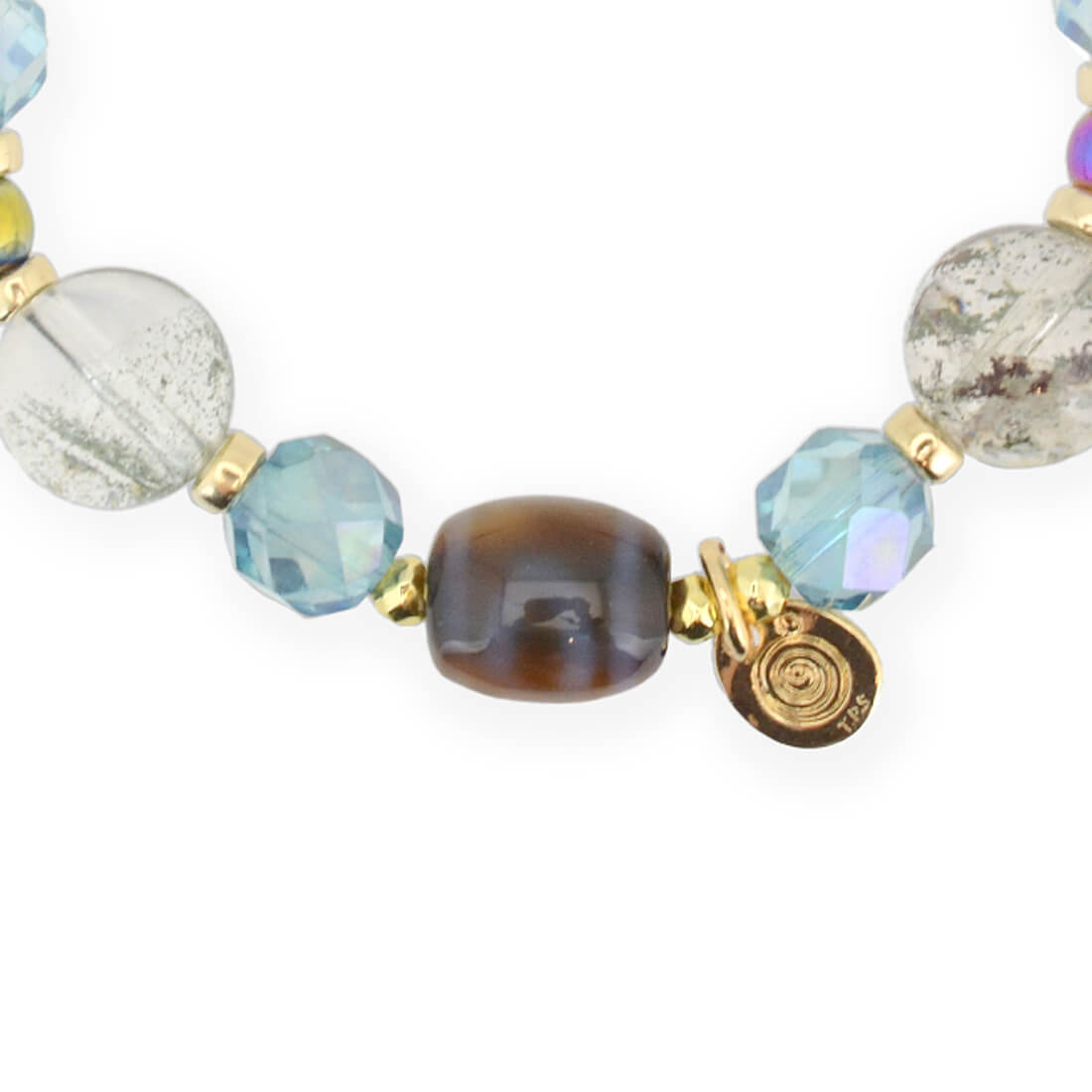 アクアオーラ+ピーコックヘマタイト+ラピスラズリ+ガーデンクォーツ+ゴールドヘマタイト+12KGF+オリジナルメダルチャーム