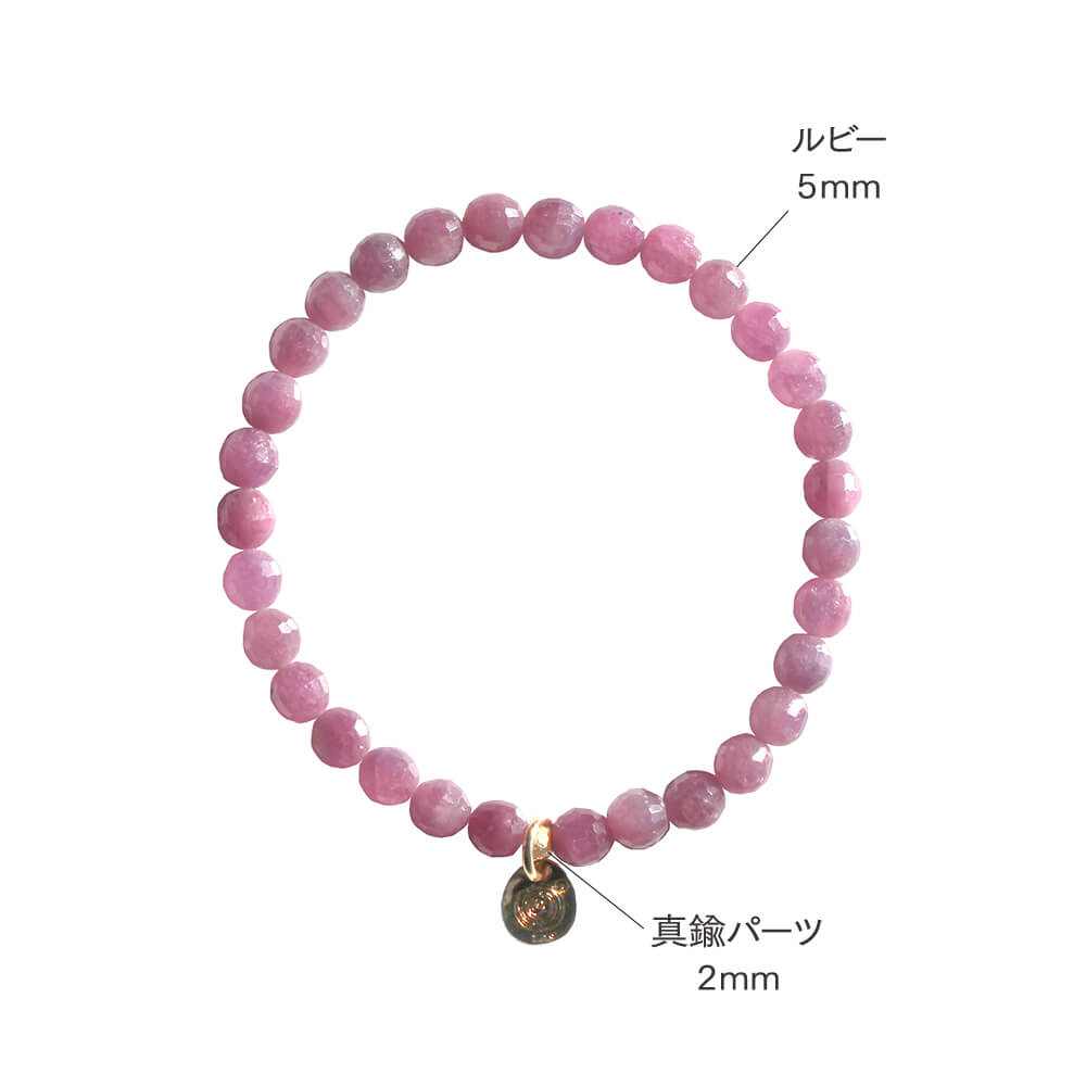 勝利の石と呼ばれ、生命力アップ・魔除け・情熱や深い愛情の象徴とされるルビーなどを組み合わせたブレスレットです。