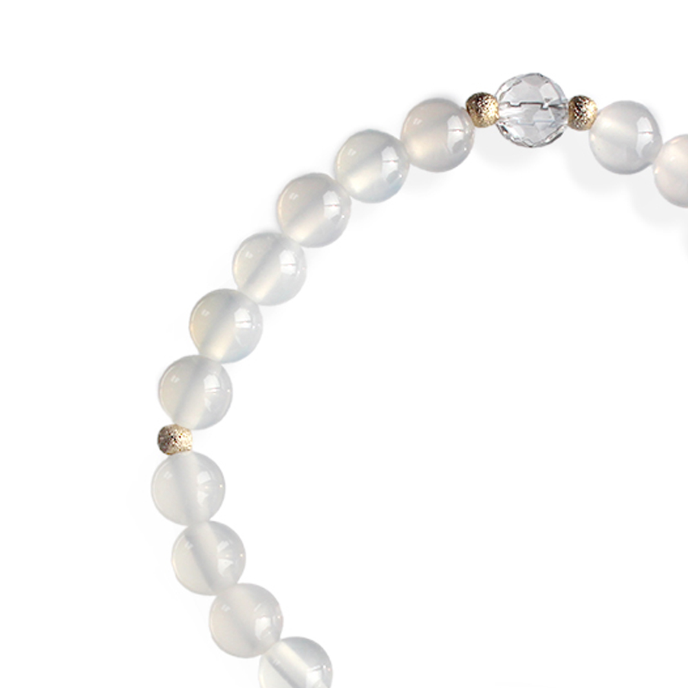 ホワイトカルセドニー+水晶+真鍮パーツ+オリジナルメダルチャーム