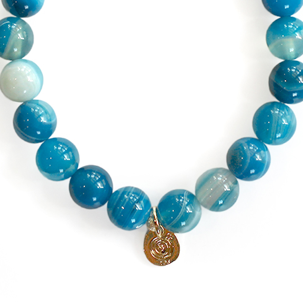 考察力や発想力を高め、気持ちを落ち着かせるといわれるブルーアゲートなどを組み合わせたブレスレットです。