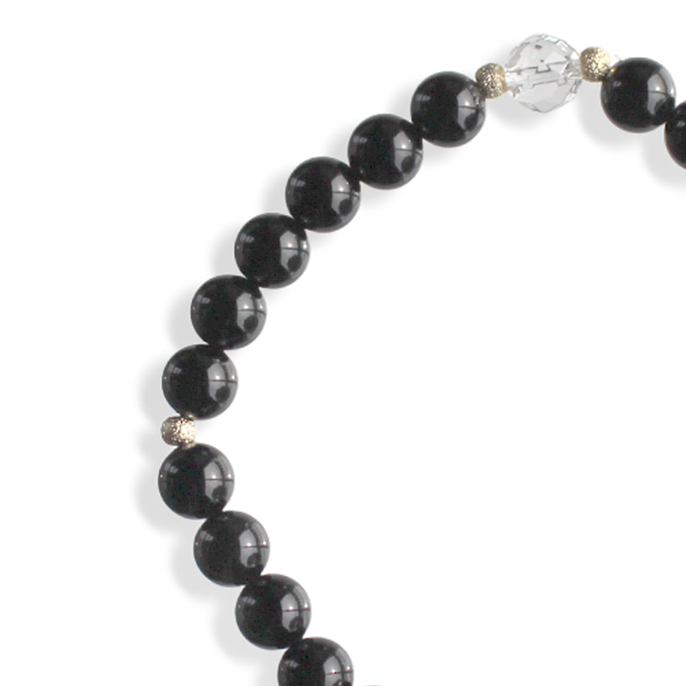 オニキス+水晶+真鍮パーツ+オリジナルメダルチャーム