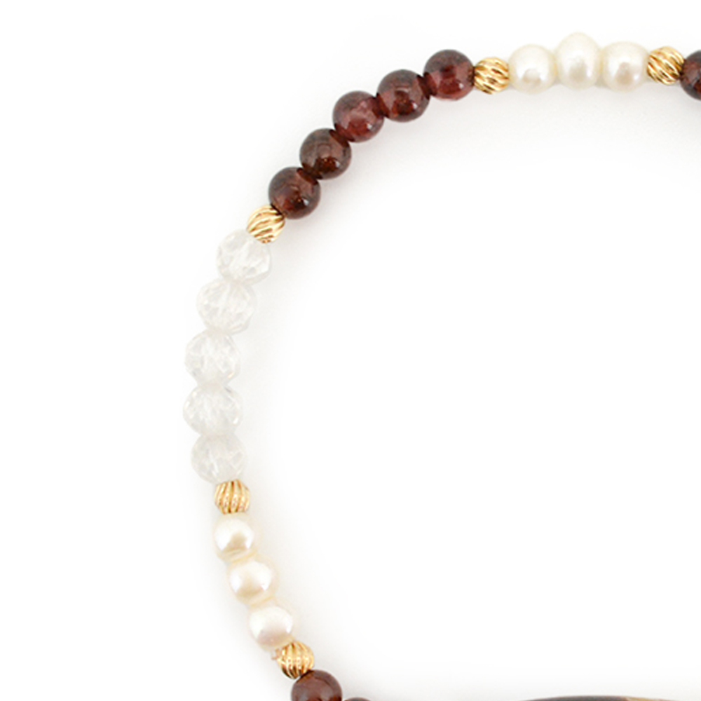 ガーネット+パール+水晶+12KGF+オリジナルメダルチャーム