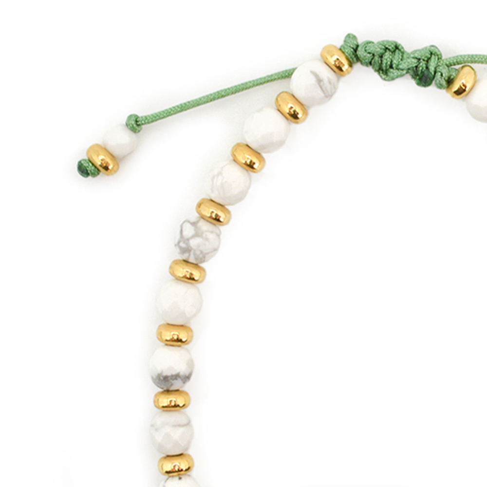 ハウライト+真鍮パーツ+オリジナルメダルチャーム