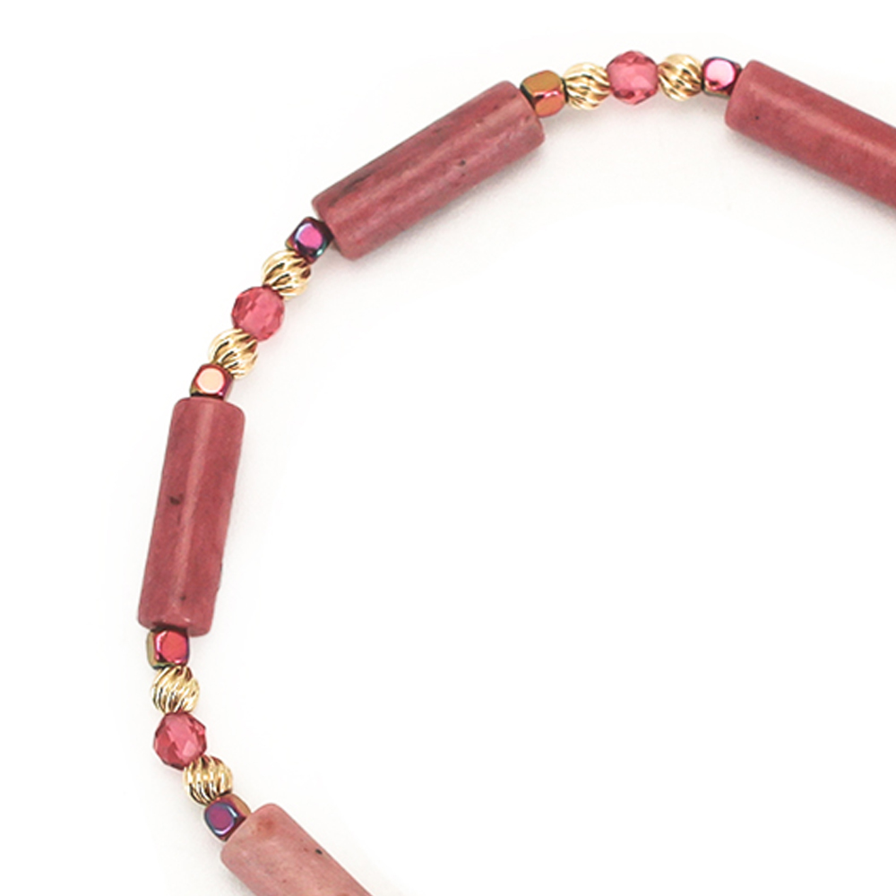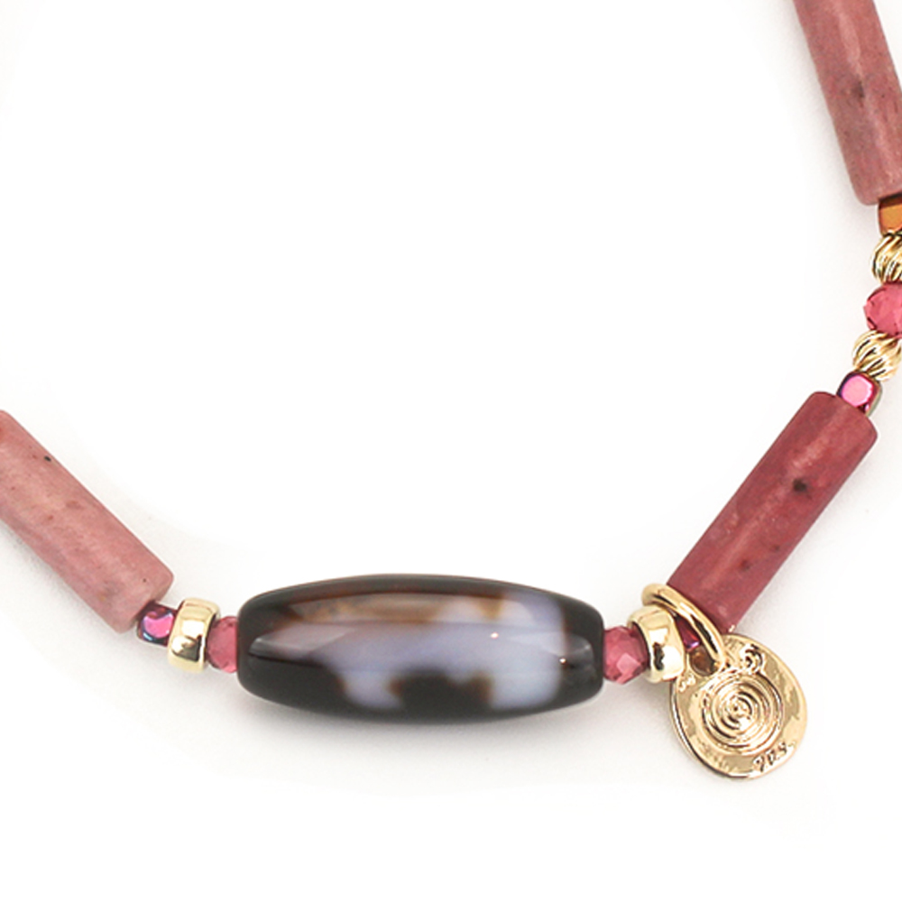 ピーコックヘマタイト+ピンクスピネル+ローズジャスパー+12KGF+オリジナルメダルチャーム