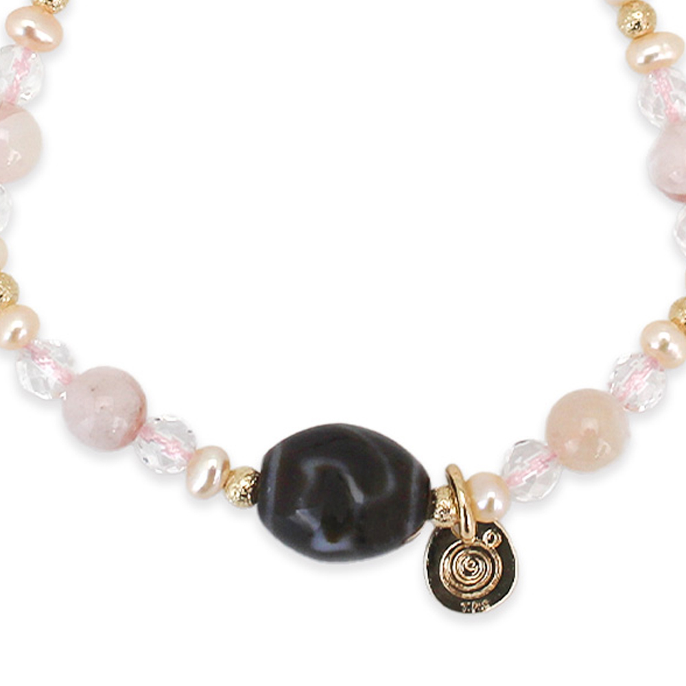 チェリーブロッサムアゲート+水晶+パール+12KGF+オリジナルメダルチャーム