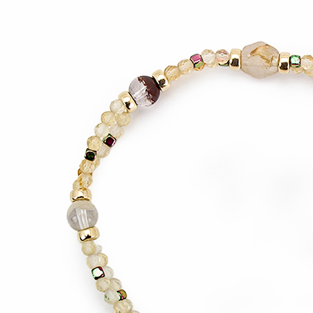 ピーコックヘマタイト+ガーデンクォーツ+シトリン+ルチルクォーツ+12KGF+オリジナルメダルチャーム