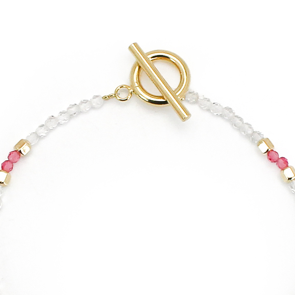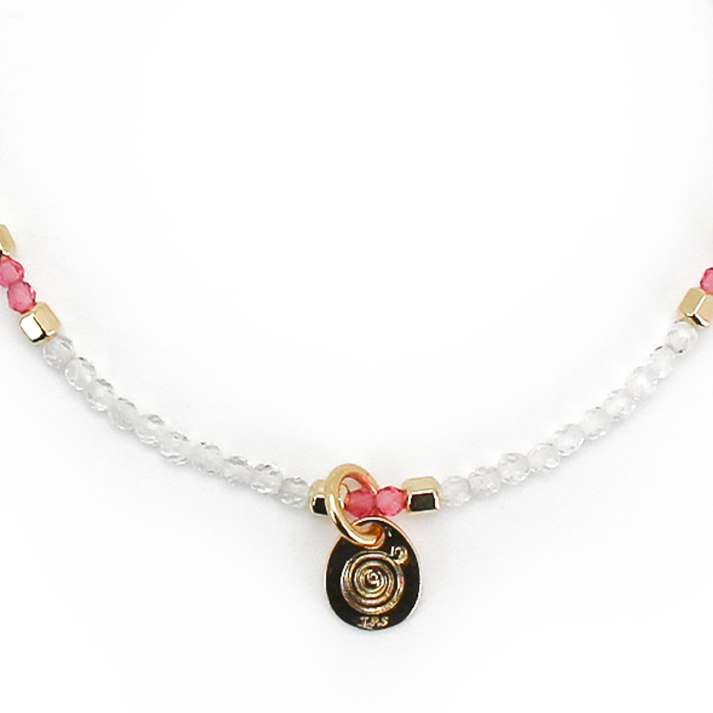 パール+ピンクスピネル+水晶+12KGF+14KGF+オリジナルメダルチャーム