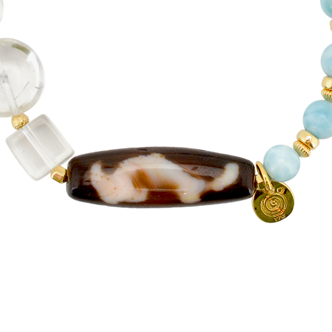 ラリマー+水晶+ルチルクォーツ+12KGF+14KGF+オリジナルメダルチャーム