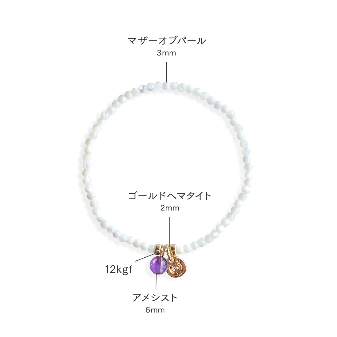 マザーオブパール+アメシスト+ゴールドヘマタイト+12KGF+オリジナルメダルチャーム