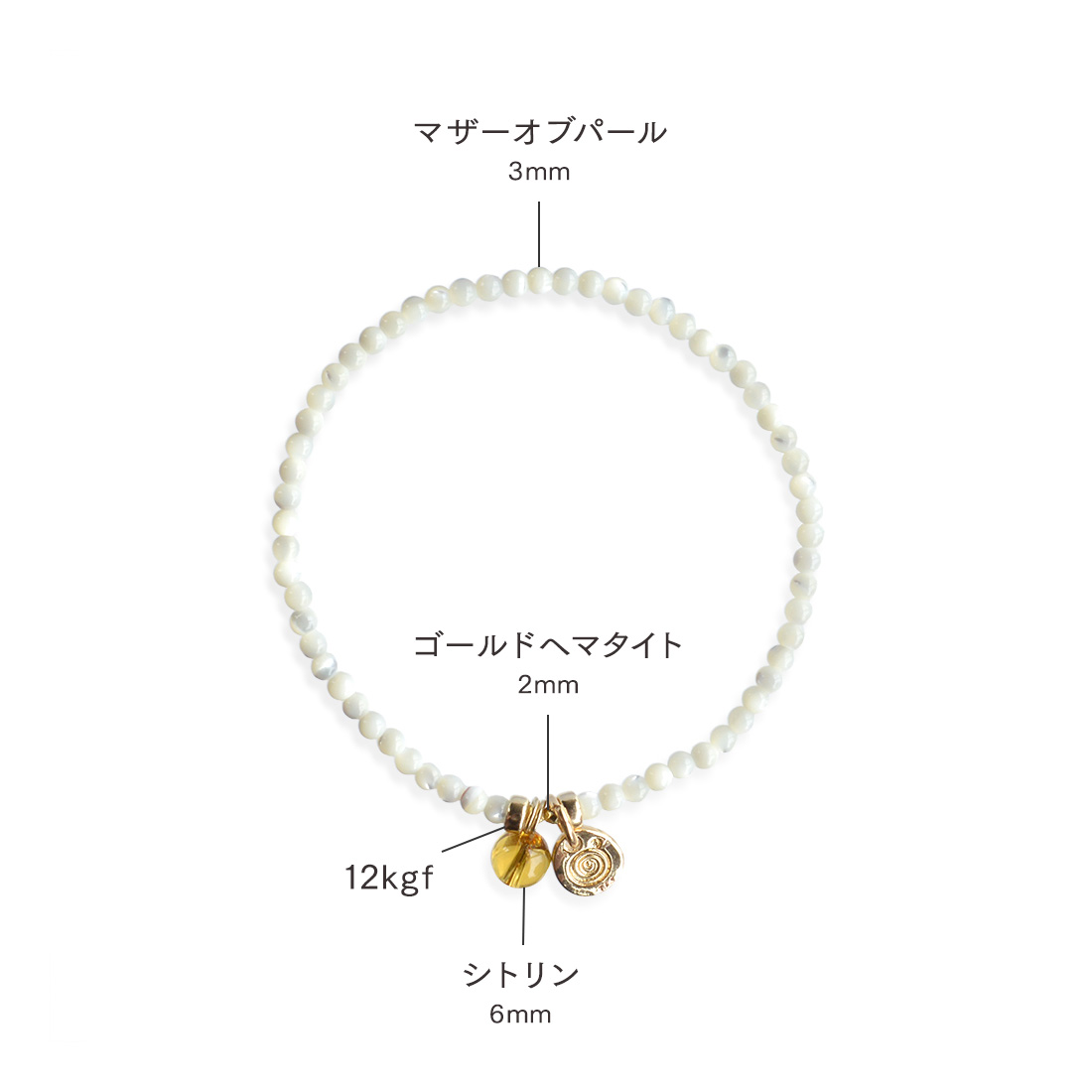 マザーオブパール+シトリン+ゴールドヘマタイト+12KGF+オリジナルメダルチャーム