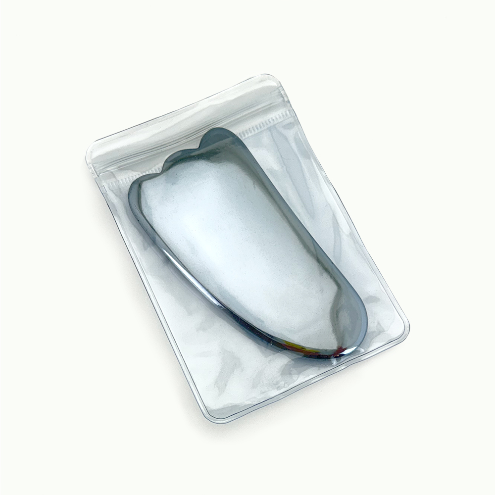 細胞の活性化や新陳代謝を促進すると言われるテラヘルツ鉱石を用いたカッサプレートです。顔やリンパマッサージにぴったりの手になじむ形状で、皮膚を優しくこすりながら経絡や体内の気・水・血の流れを整えましょう。