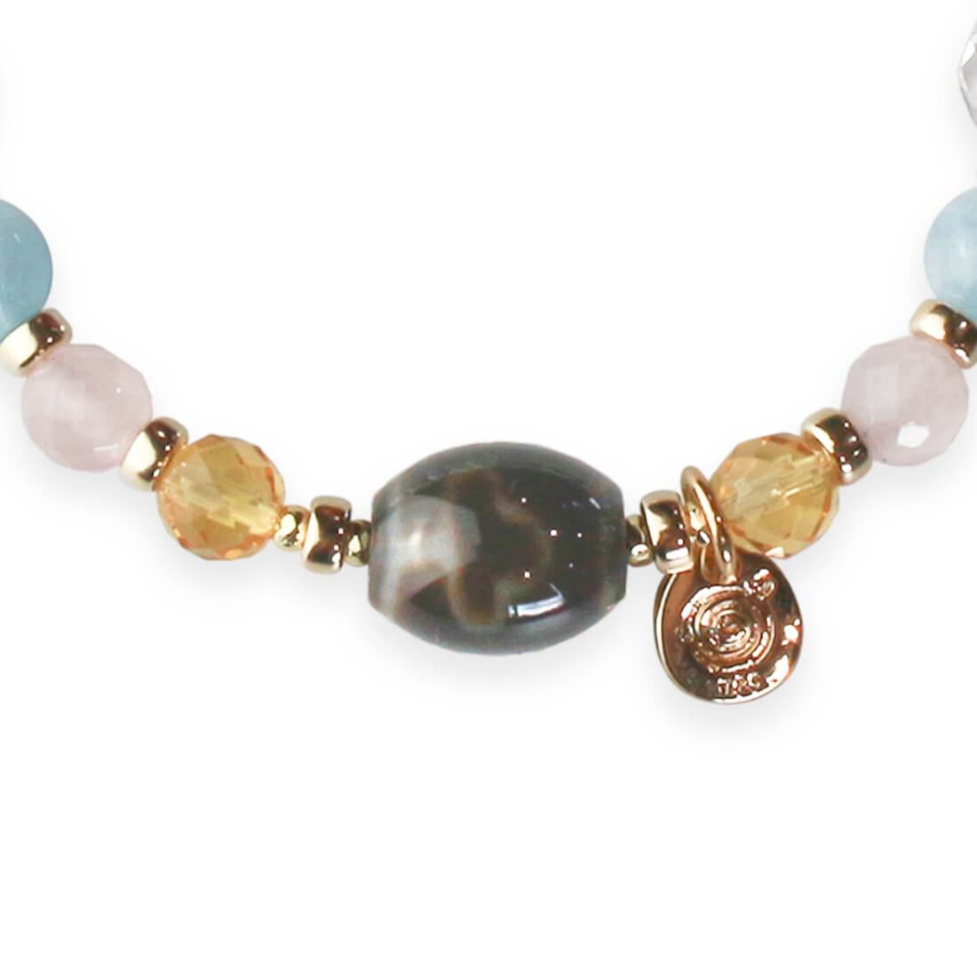 ローズクォーツ+水晶+アクアマリン+シトリン+ゴールドヘマタイト+12KGF+オリジナルメダルチャーム