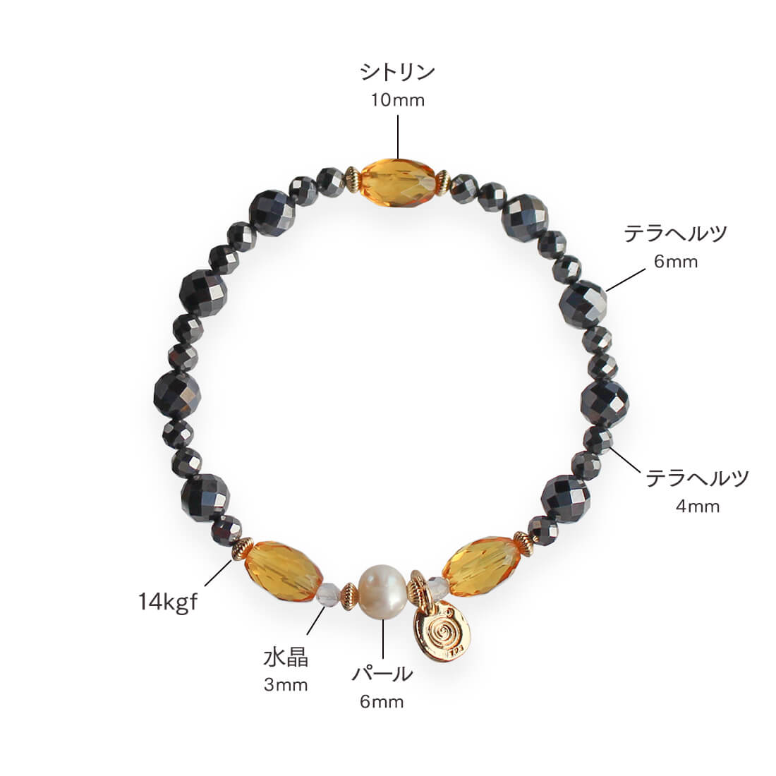 シトリン+テラヘルツ+パール+水晶+14KGF+オリジナルメダルチャーム