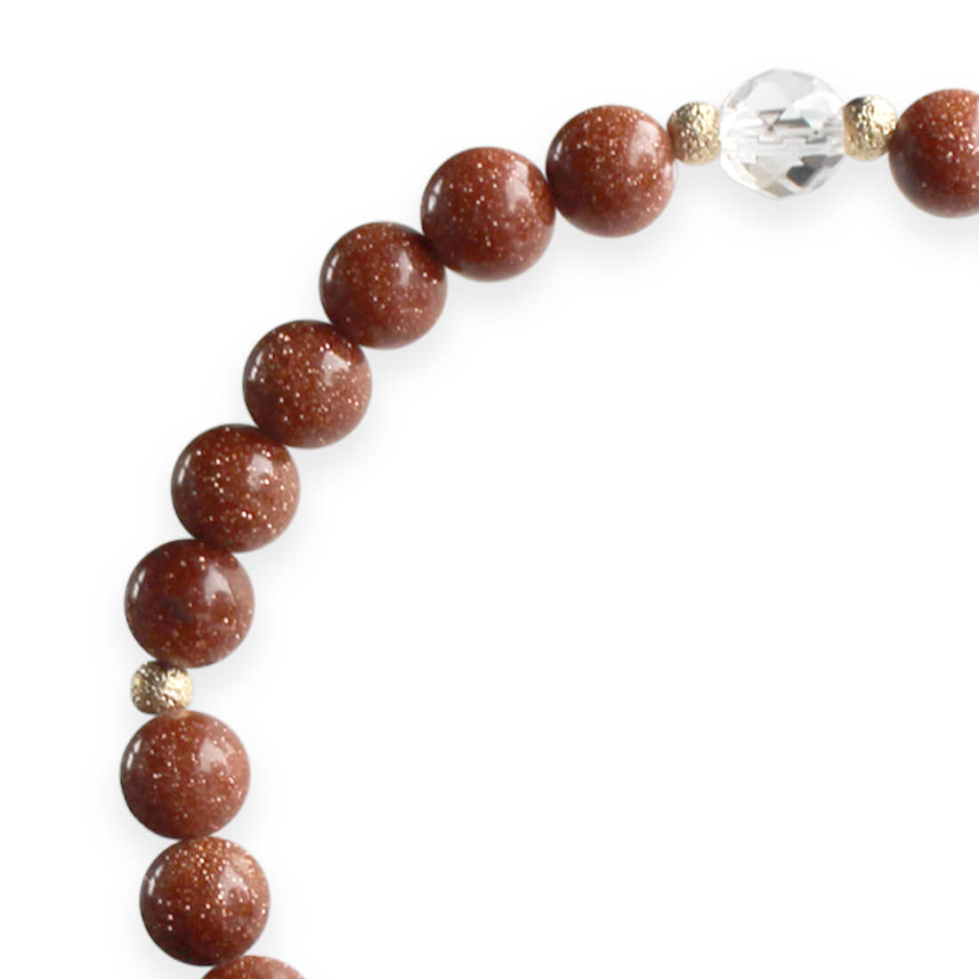 ゴールドストーン+水晶+真鍮パーツ+オリジナルメダルチャーム