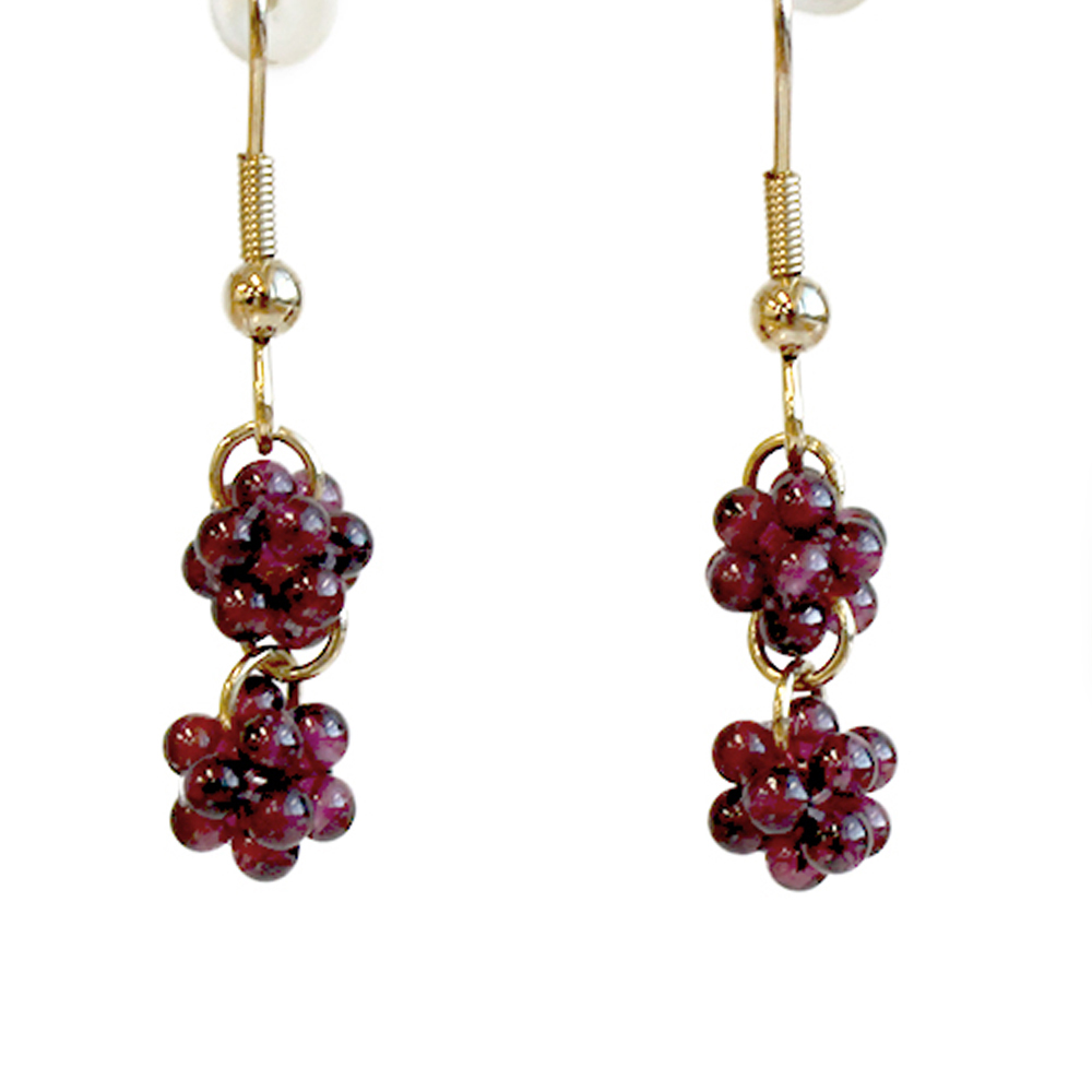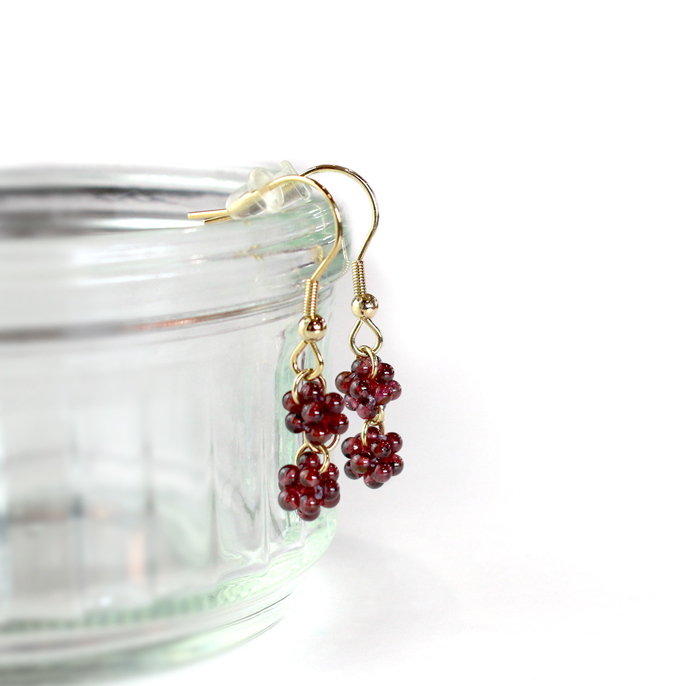 信頼と愛の石と呼ばれ、持ち主にポジティブなパワーを与え成功へと導くとされるガーネットなどを組み合わせたピアスです。