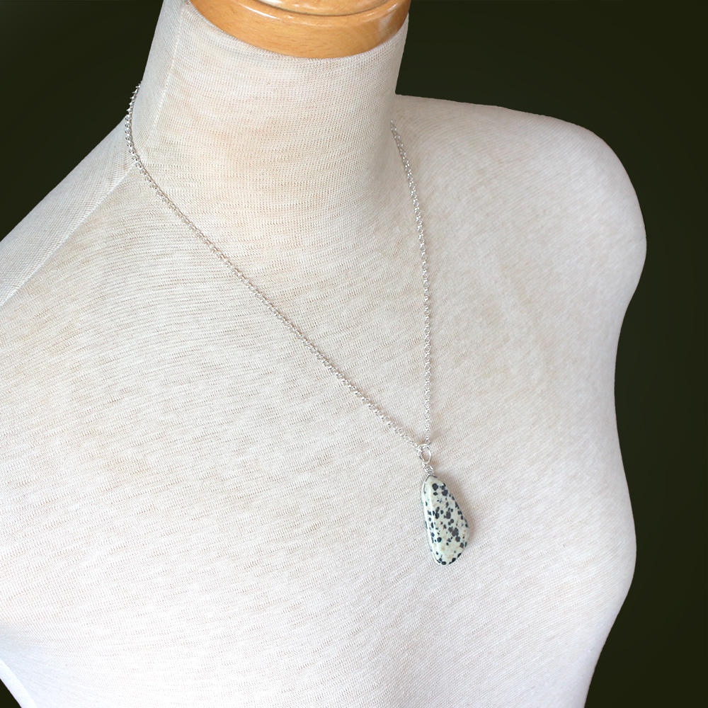 正しい思考力や判断力を高める手助けをしてくれるといわれているダルメシアンジャスパーなどを組み合わせたペンダントです。