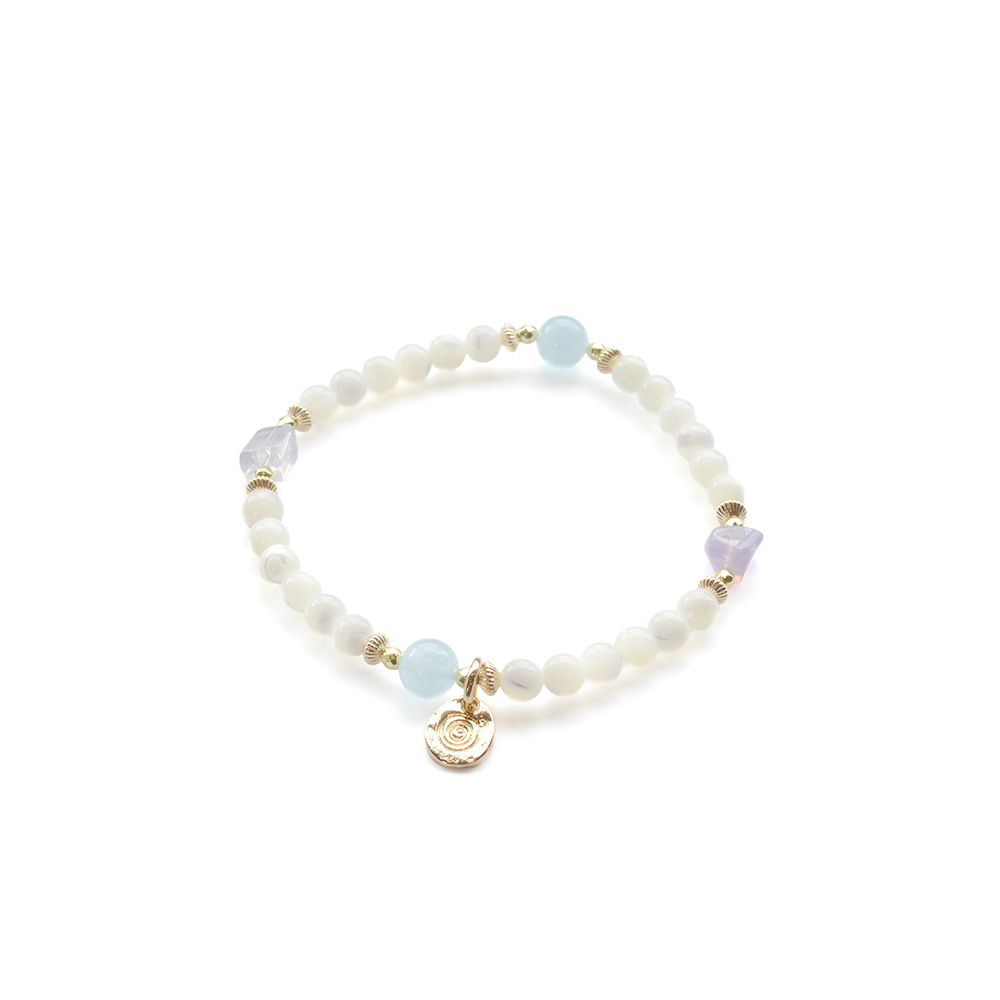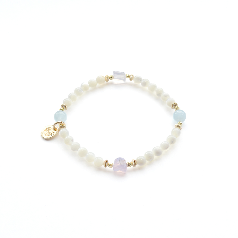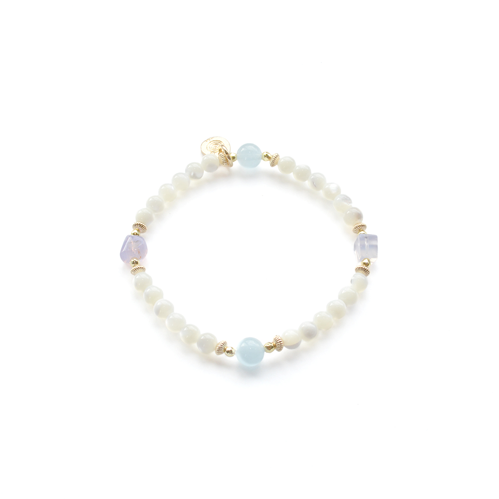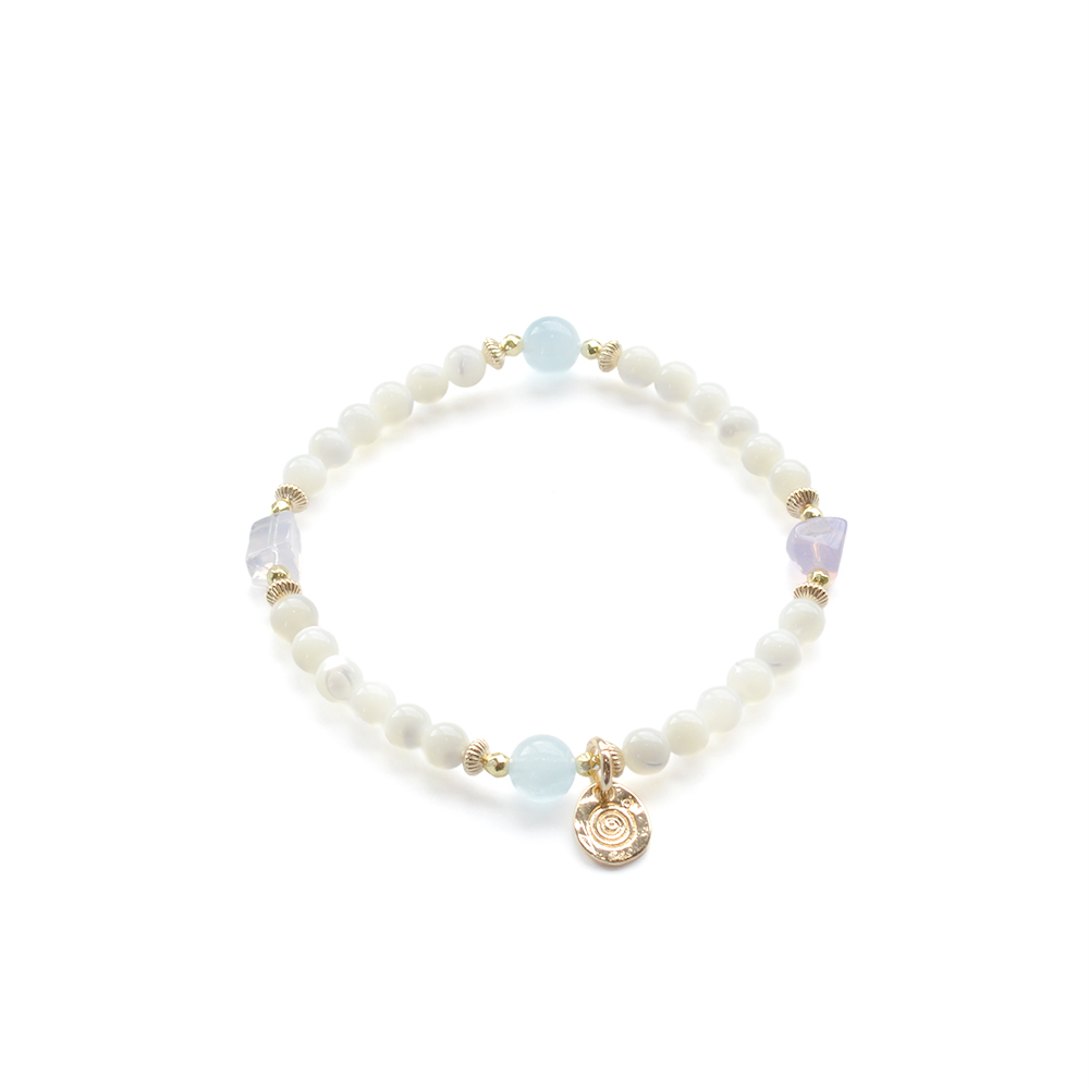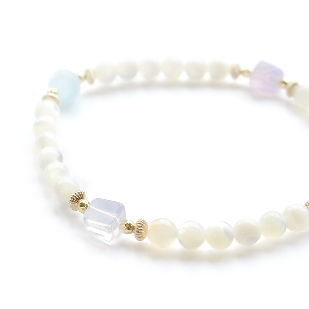 アクアマリン+マザーオブパールデザインブレスレット