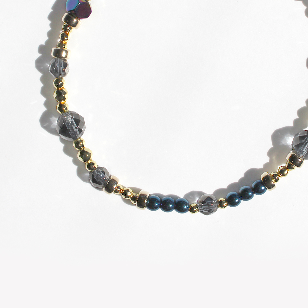 ピーコックヘマタイト+ブルーヘマタイト+ミッドナイトオーラ+ゴールドヘマタイト+12KGF+オリジナルメダルチャーム