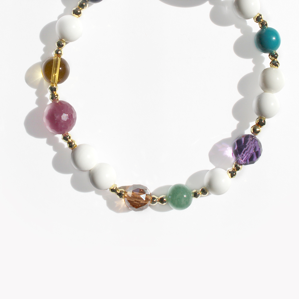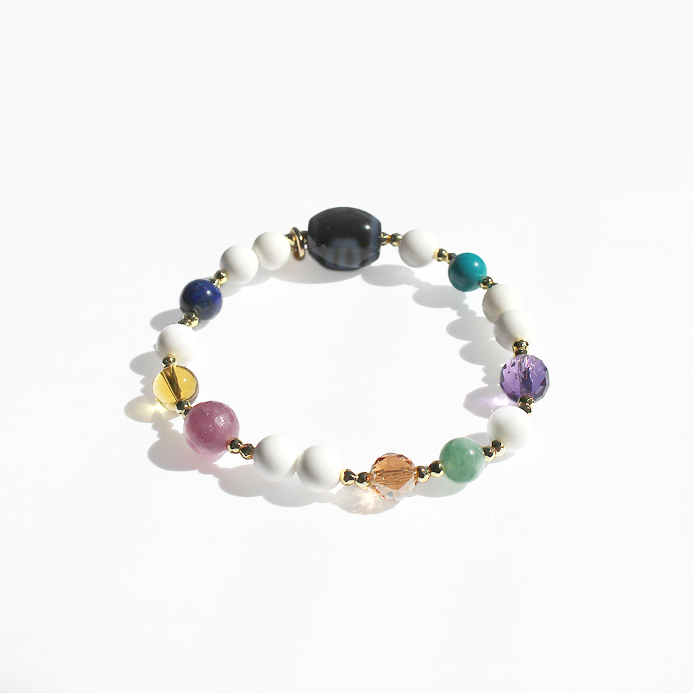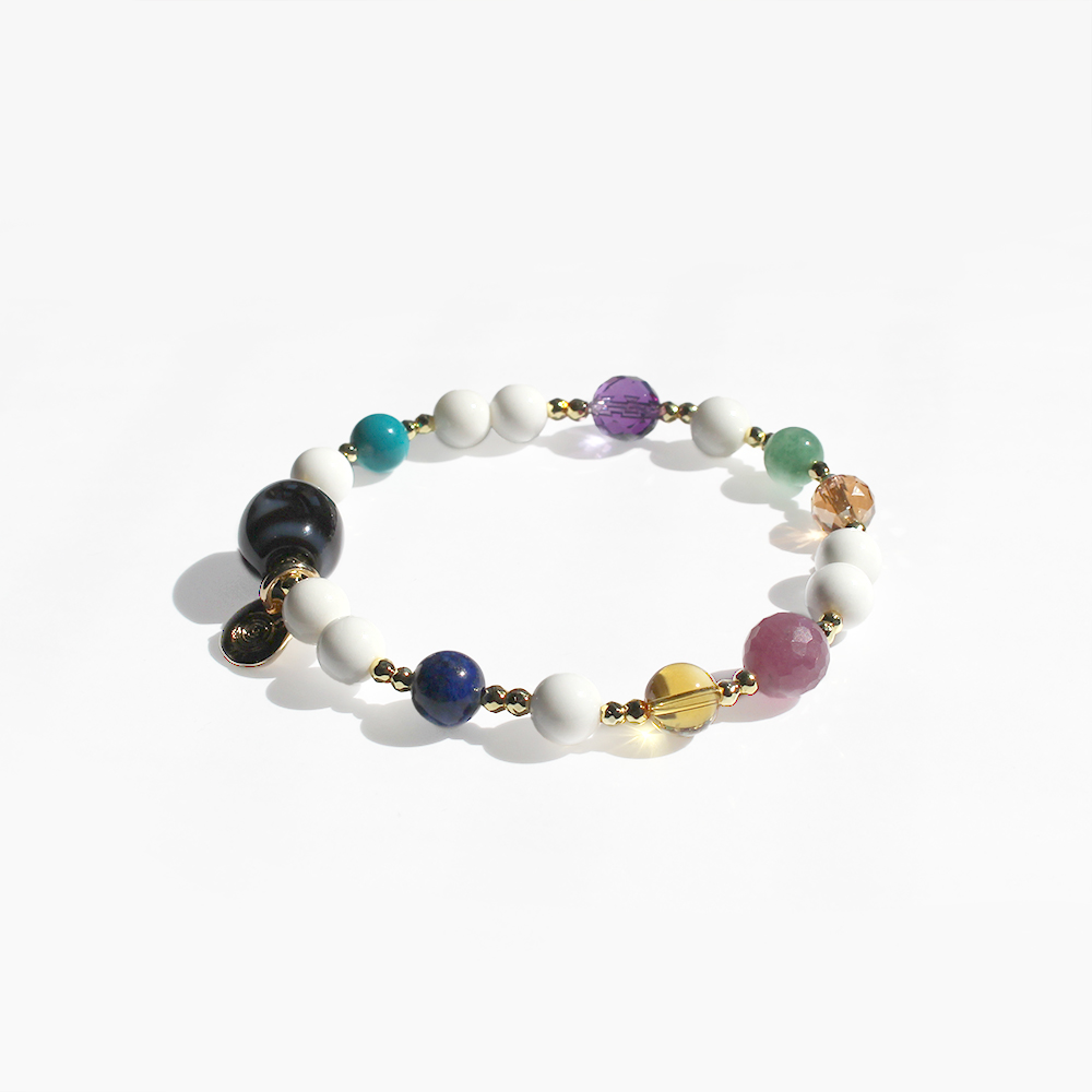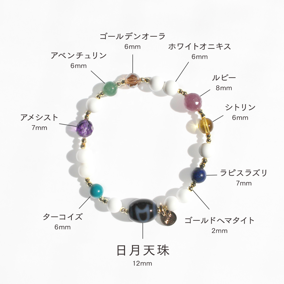 ホワイトオニキス+ラピスラズリ+シトリン+ルビー+ゴールデンオーラ+アベンチュリン+アメシスト+ターコイズ+ゴールドヘマタイト+オリジナルメダルチャーム