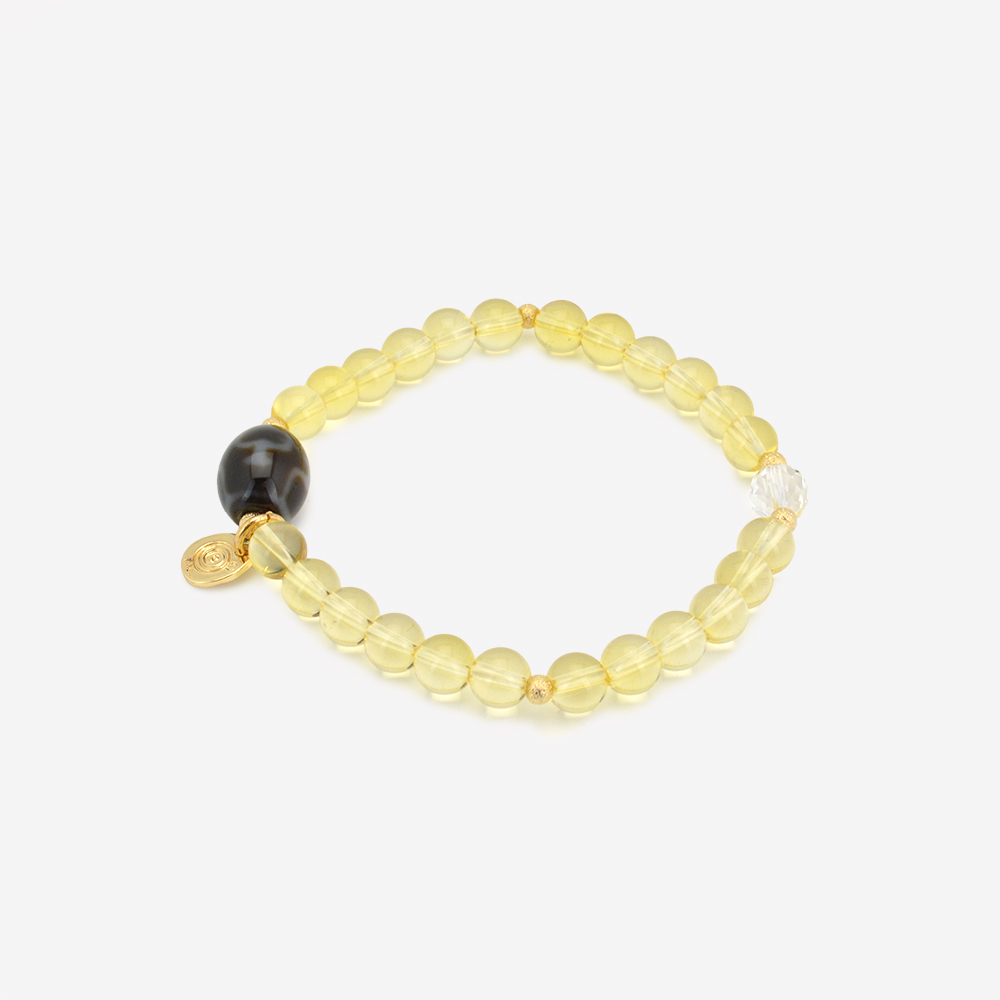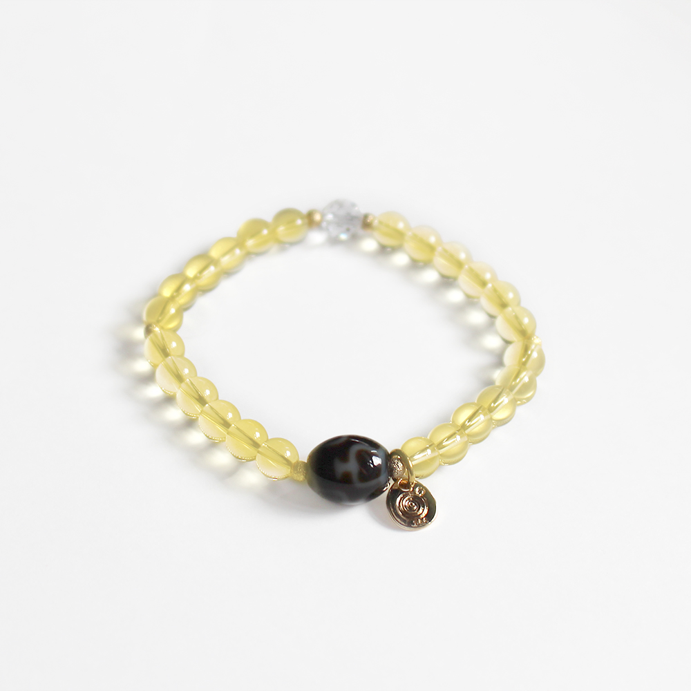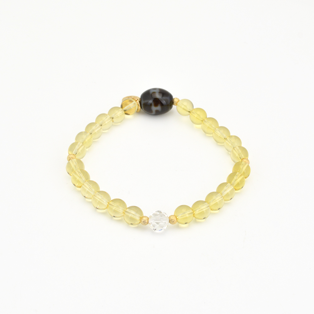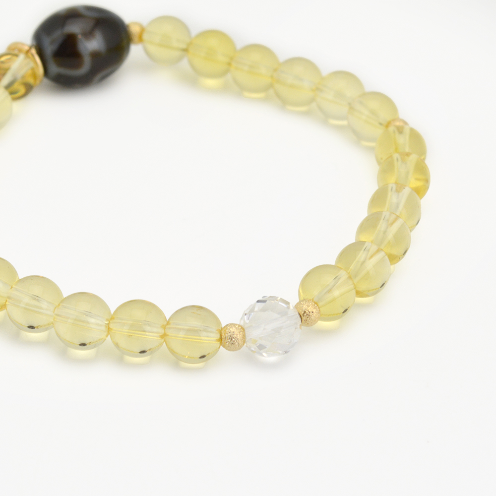 シトリン+水晶+真鍮パーツ+オリジナルメダルチャーム