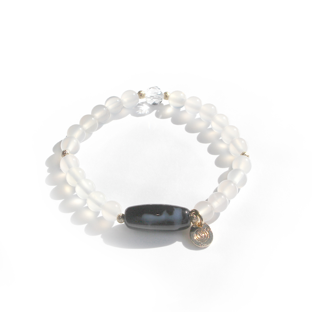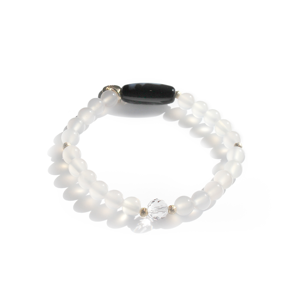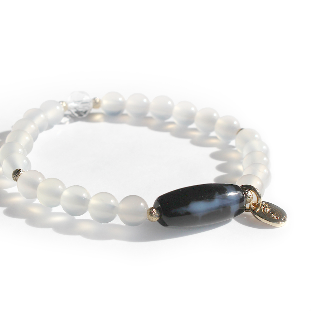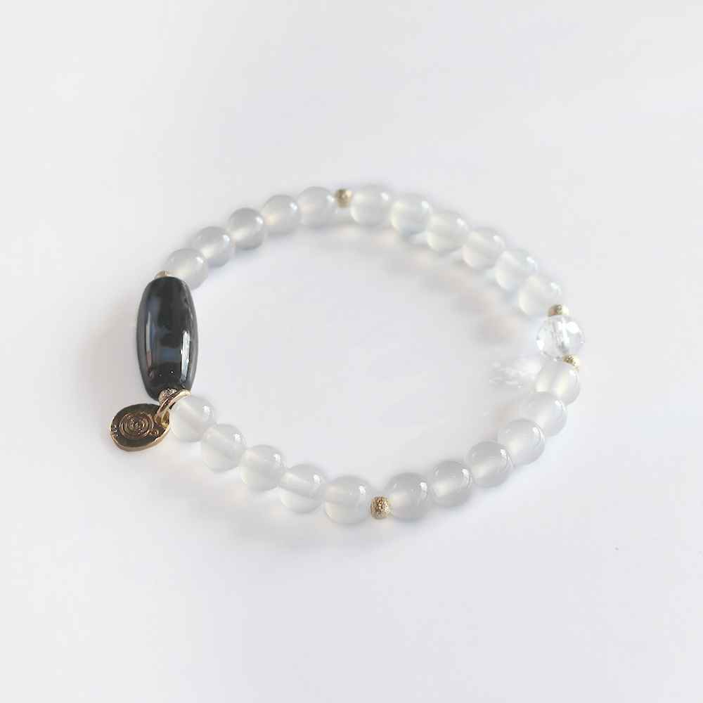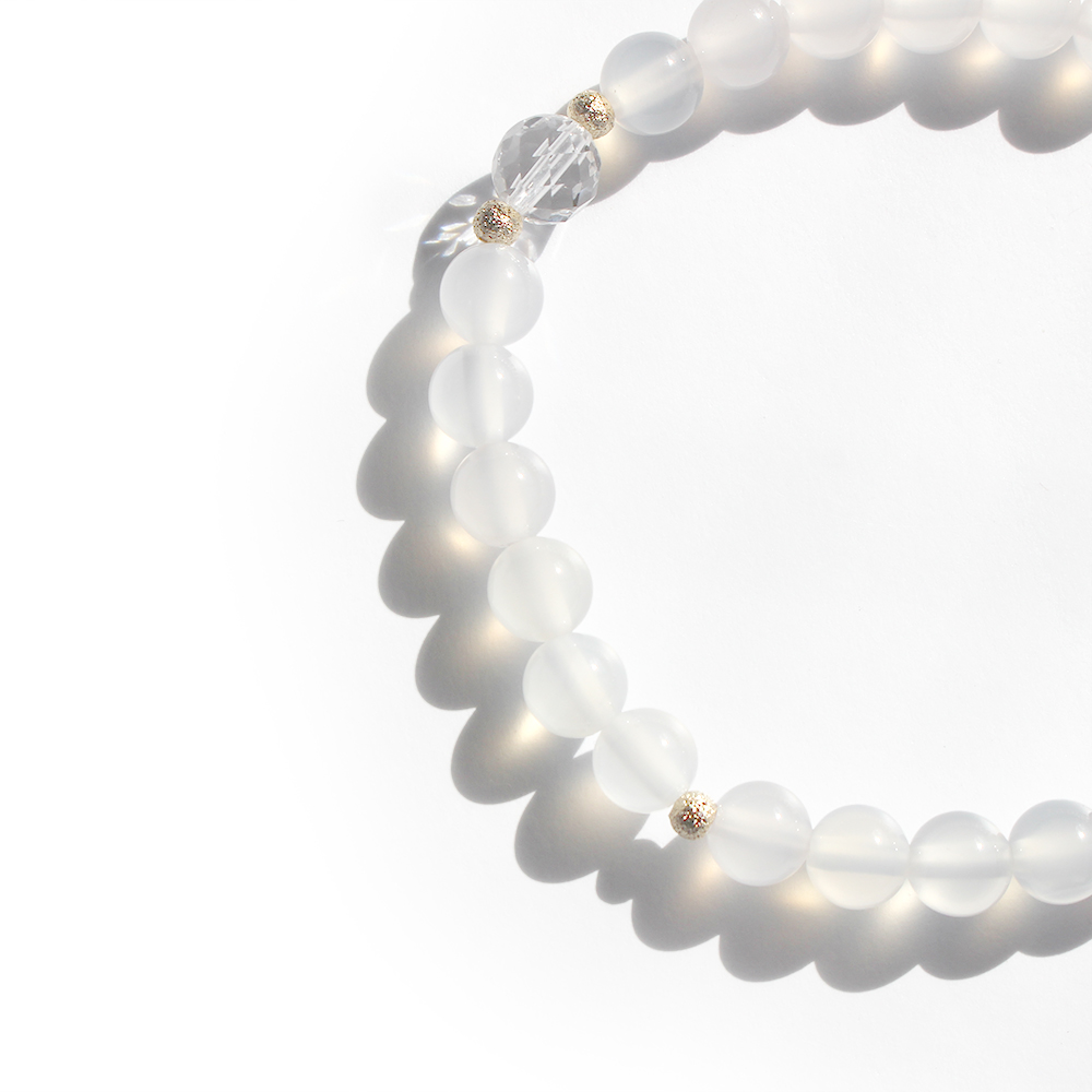 愛情の石と呼ばれ、人間関係の安定や家族の絆を深くしてくれるとされるホワイトカルセドニーなどを組み合わせました。
