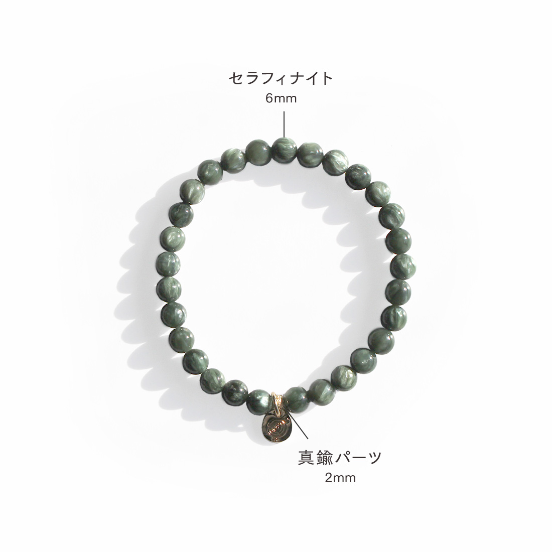 セラフィナイト+真鍮パーツ+オリジナルメダルチャーム