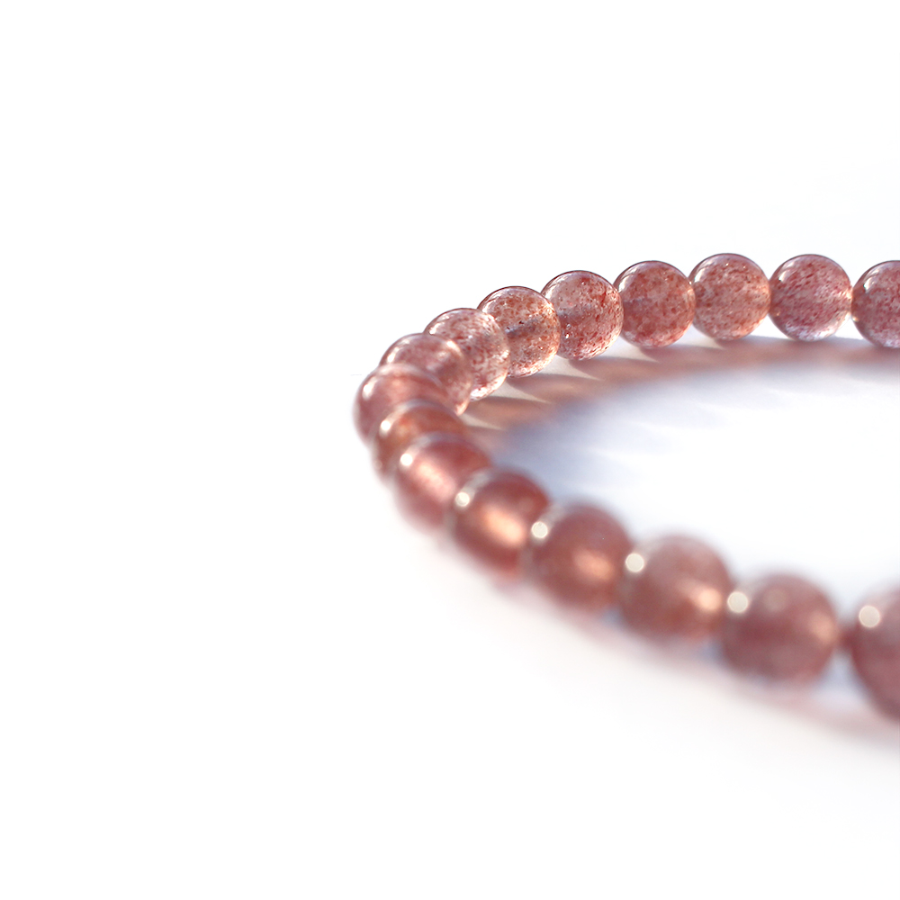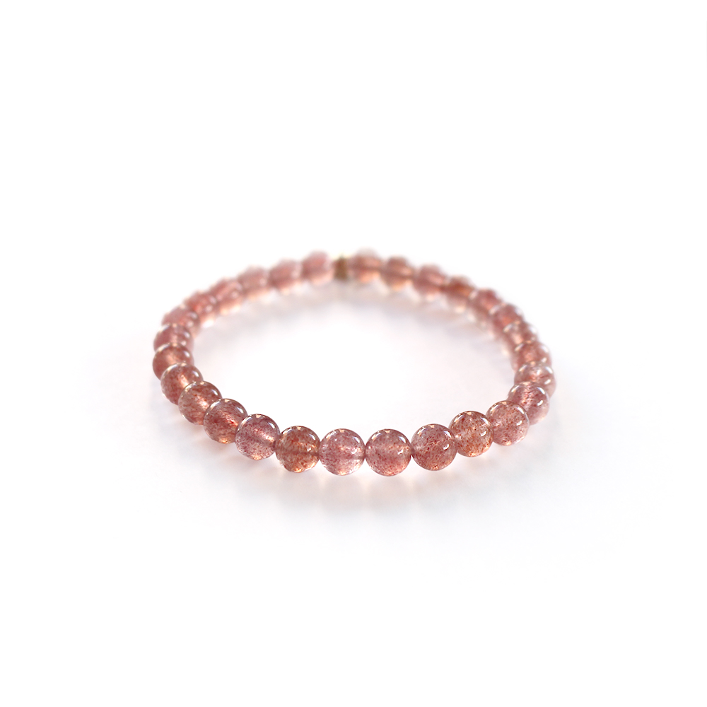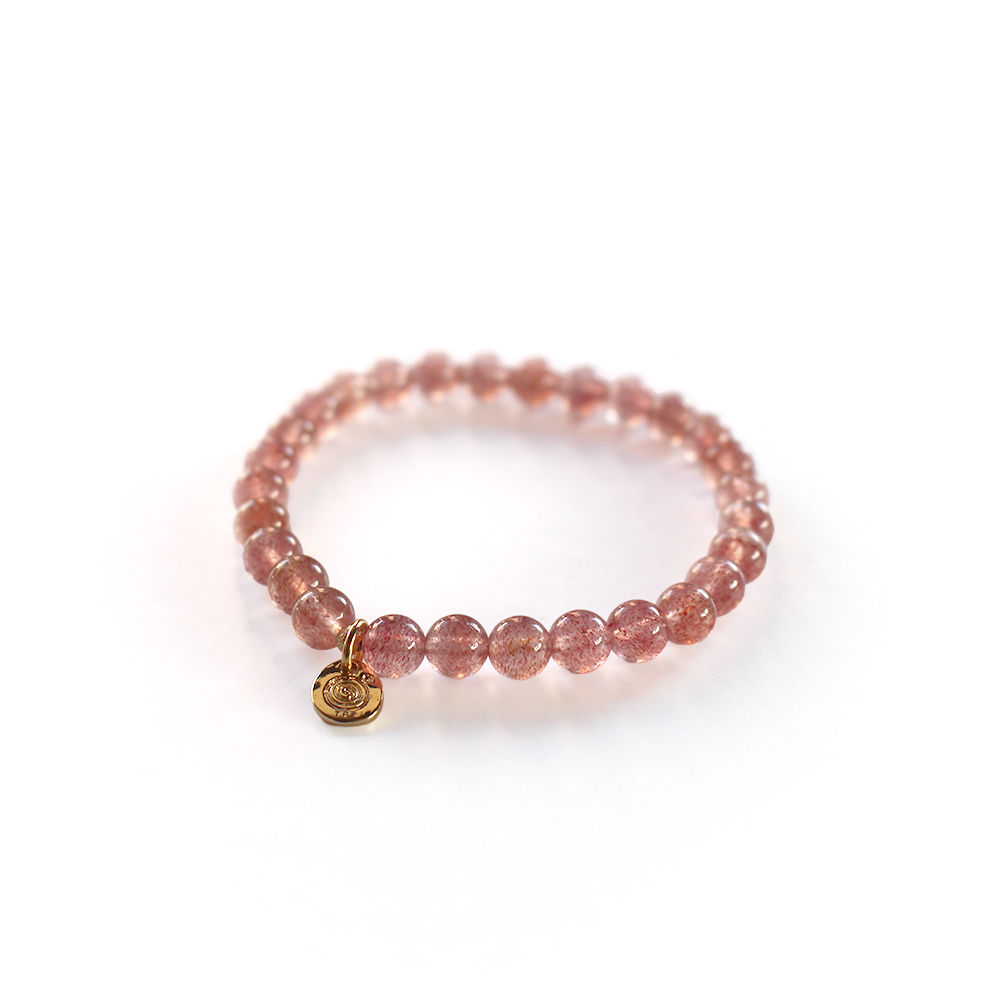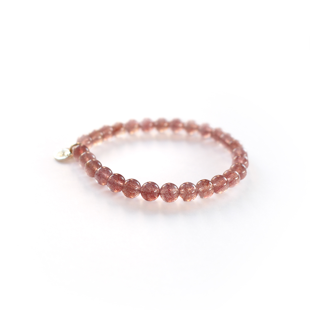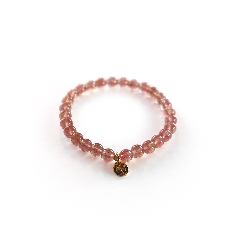 恋愛成就のお守りとされ、幸運・チャンスを運ぶ、勝利の女神が宿る石といわれているストロベリークォーツなどを組み合わせたブレスレットです。