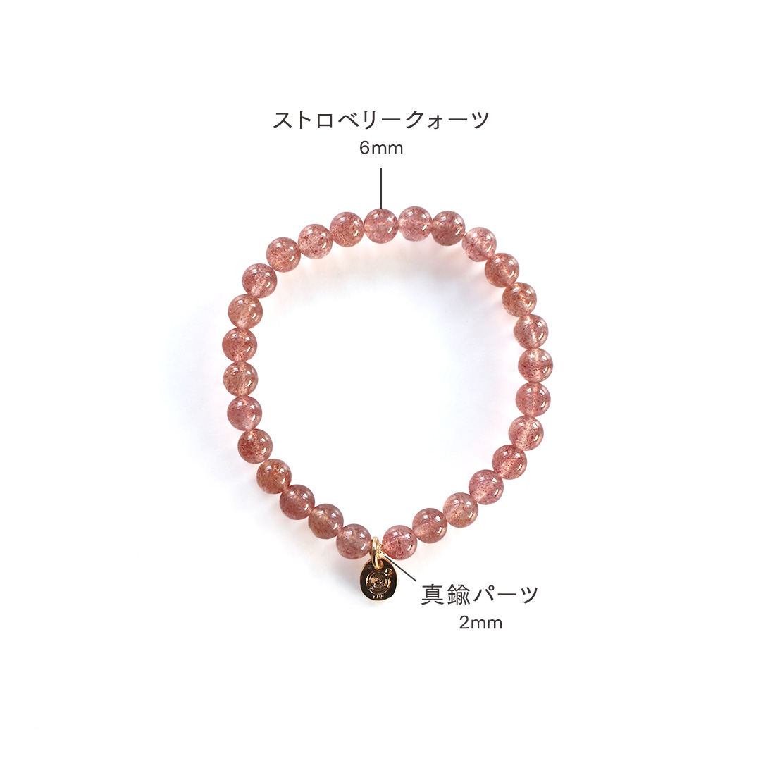 ストロベリークォーツ+真鍮パーツ+オリジナルメダルチャーム