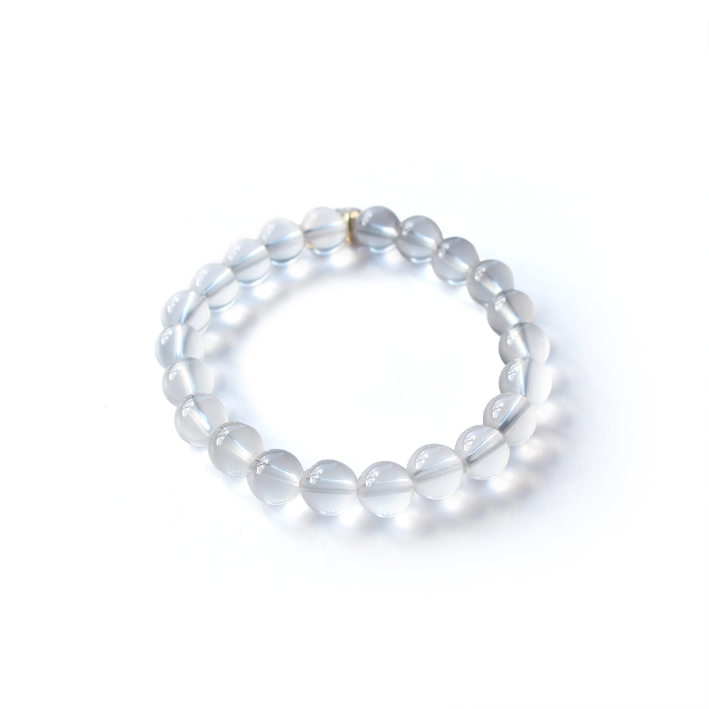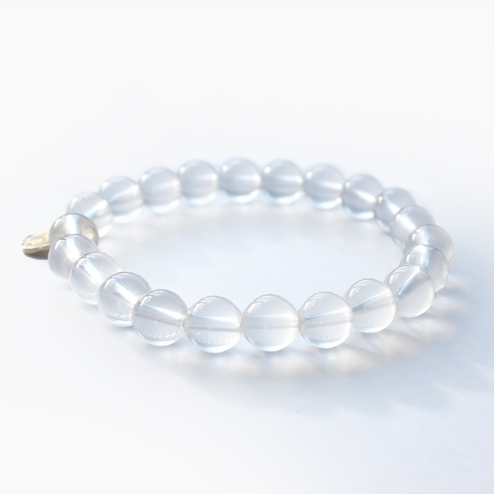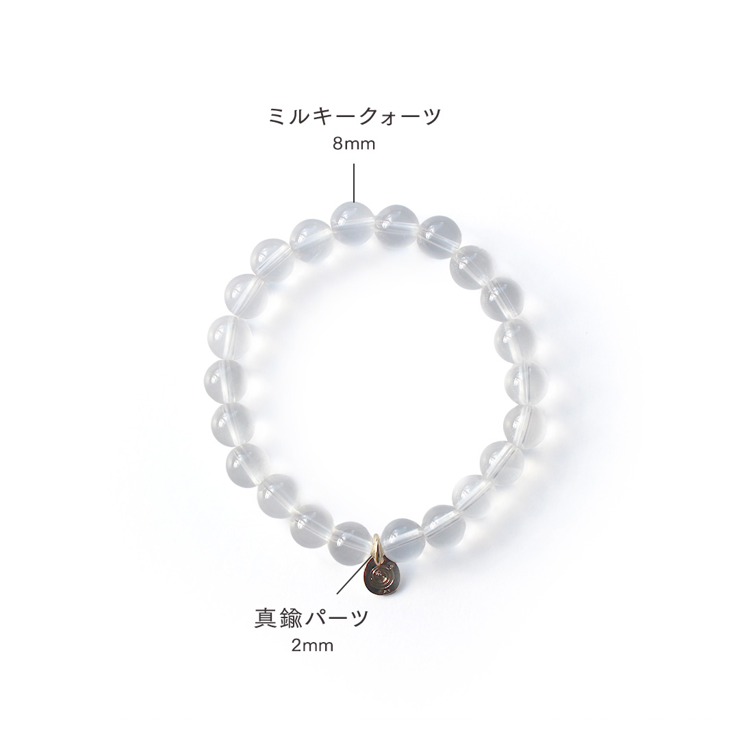 感情を落ち着かせ心にゆとりと寛大さをもたらしてくれるといわれるミルキークォーツなどを組み合わせたブレスレットです。