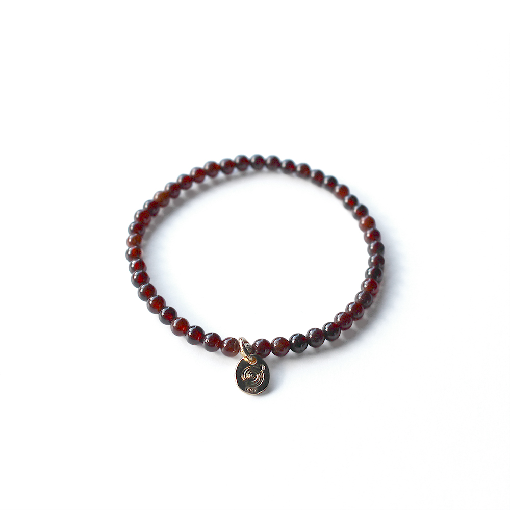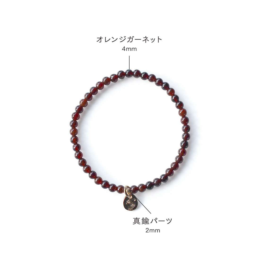 生命力を高め、前に進む力を与えてくれるといわれているオレンジガーネットなどを組み合わせたブレスレットです。