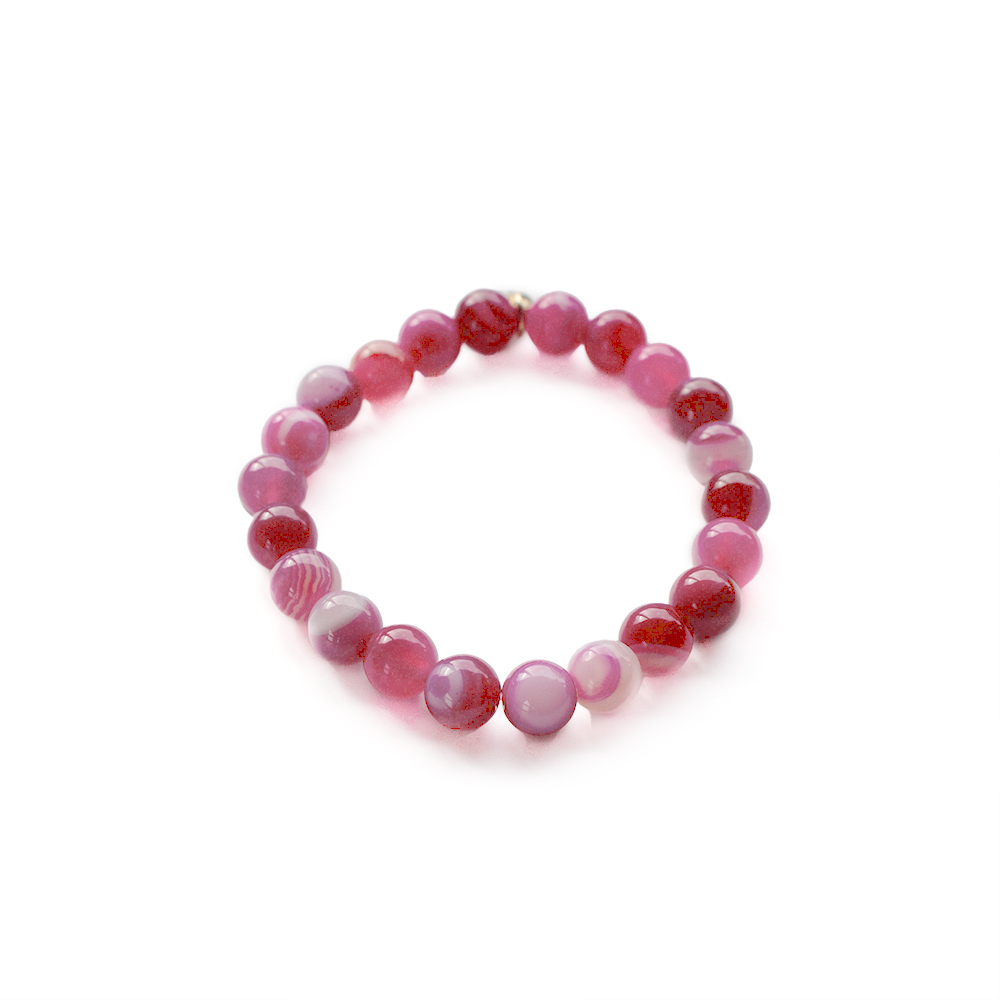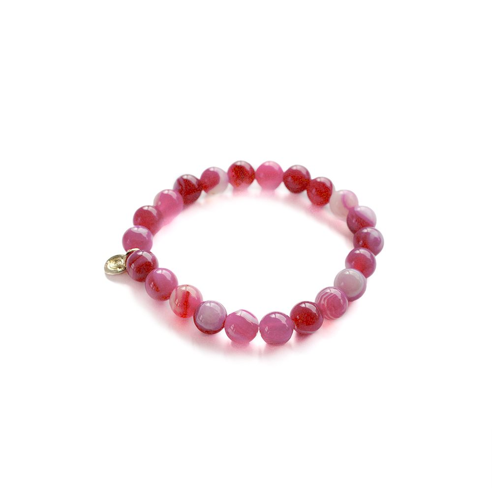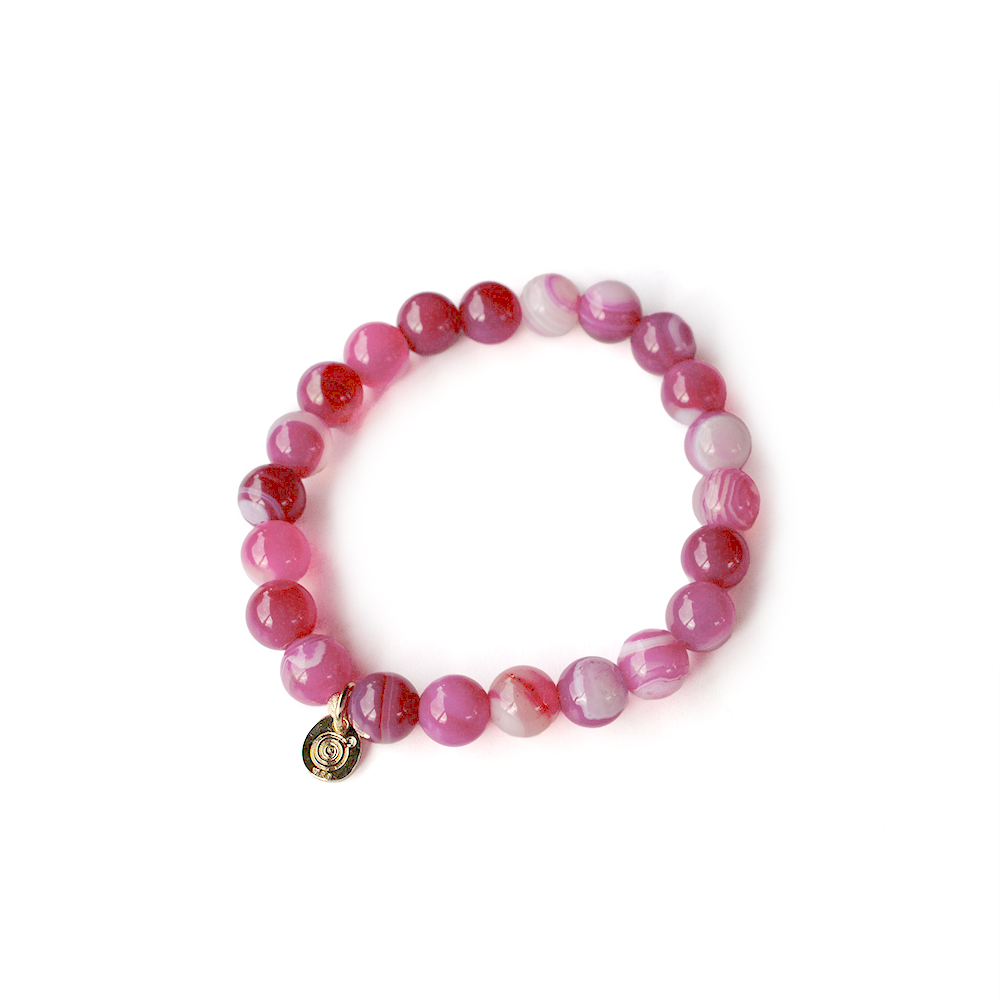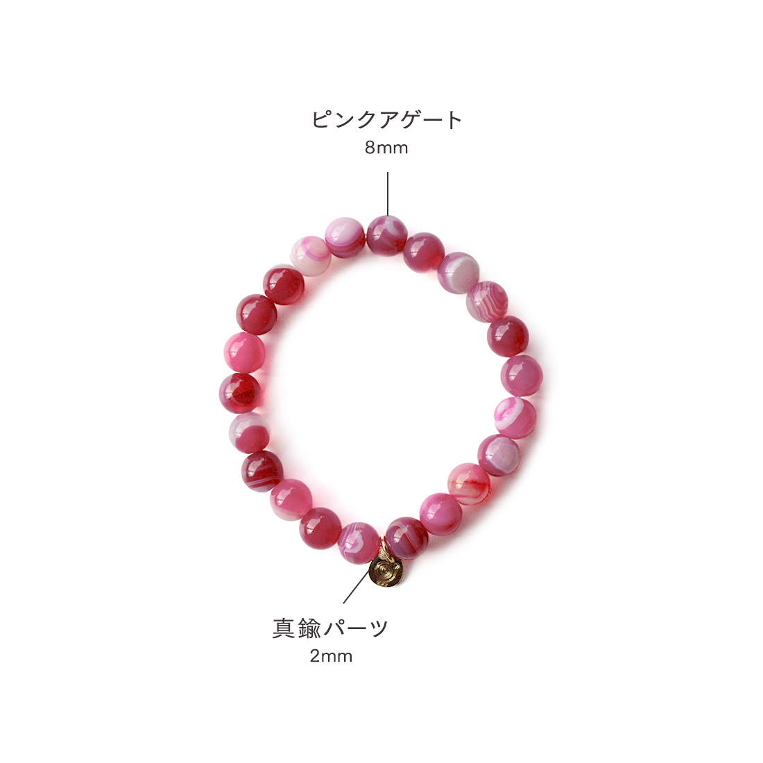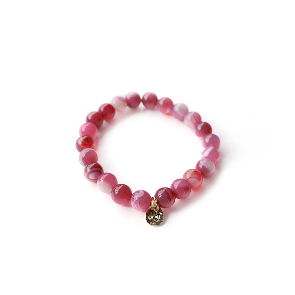 人と人との結びつきを強め、心を落ち着かせる効果もあるとされるピンクアゲートなどを組み合わせたブレスレットです。