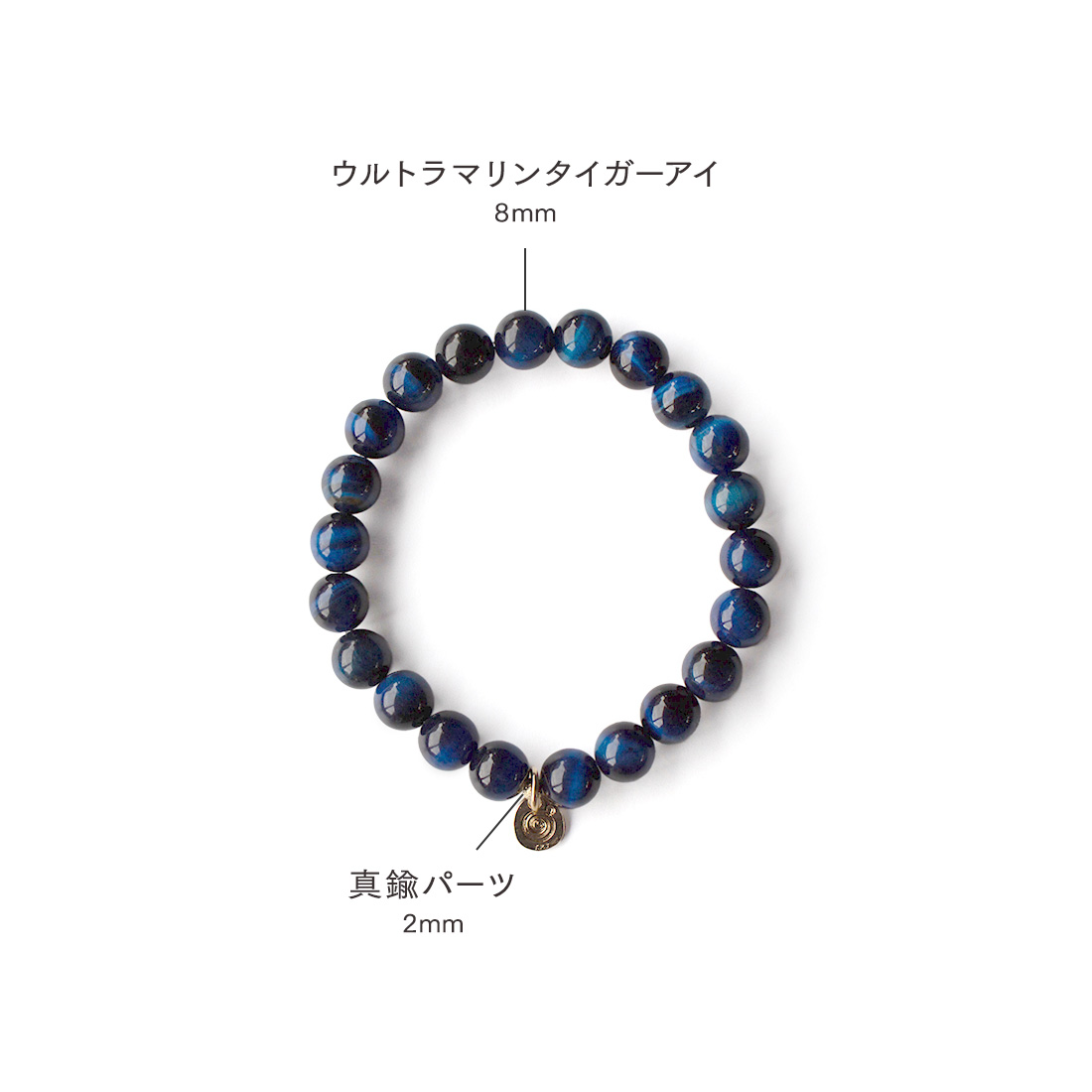 金運、仕事運を上昇させ、洞察力や頭のキレを良くするとされるウルトラマリンタイガーアイなどを組み合わせたブレスレットです。
