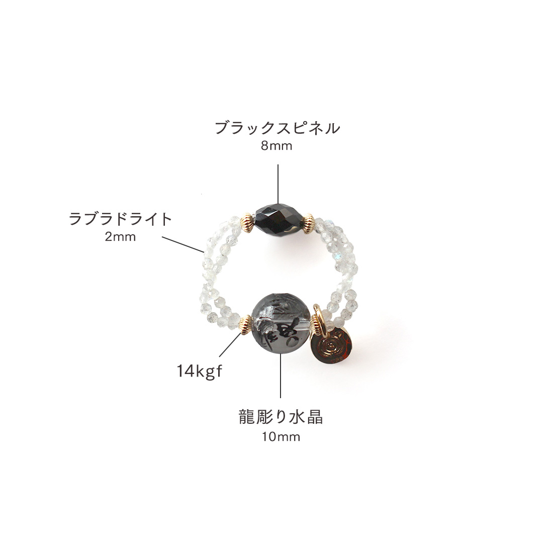 龍彫り水晶+ラブラドライト+ブラックスピネル+14KGF+オリジナルメダルチャーム