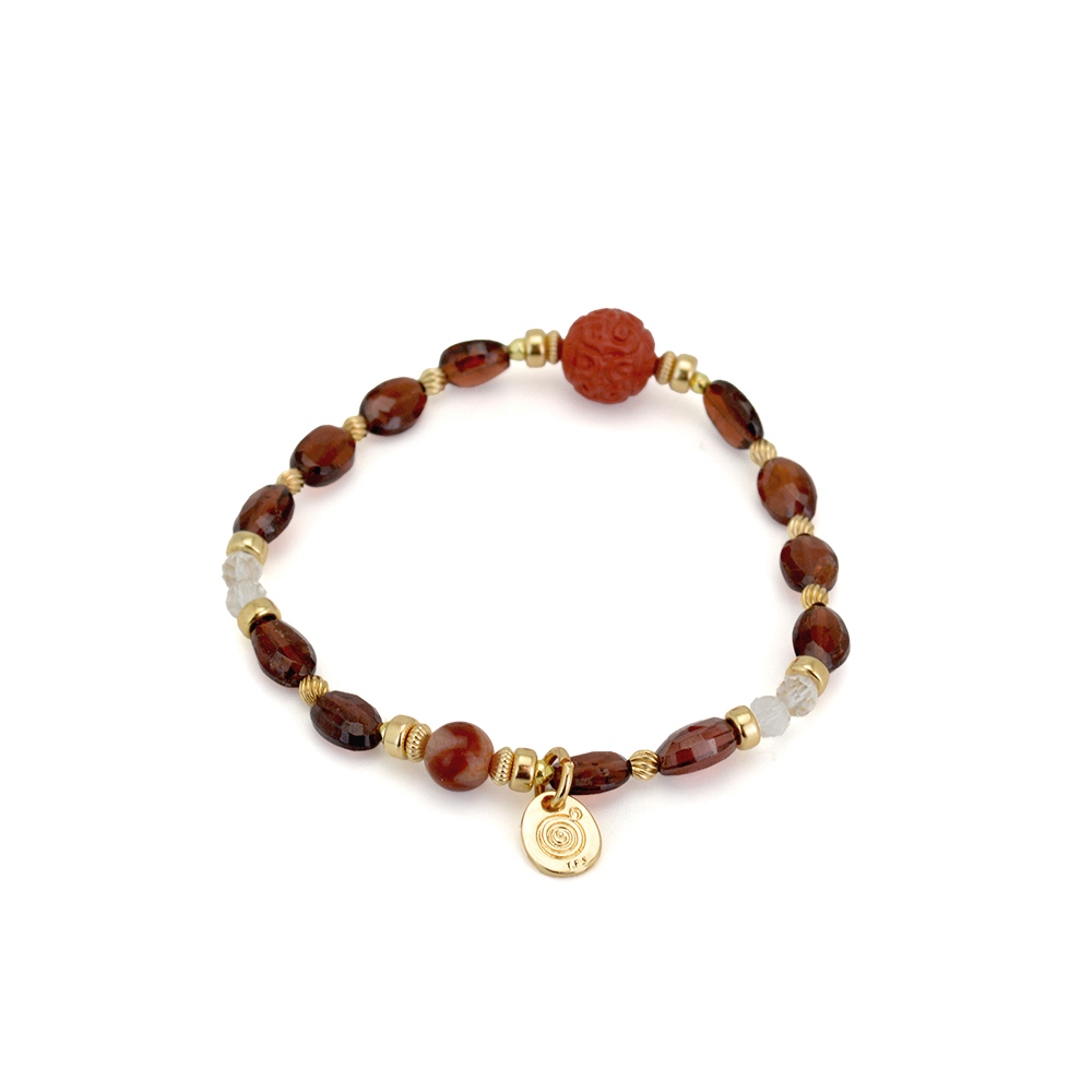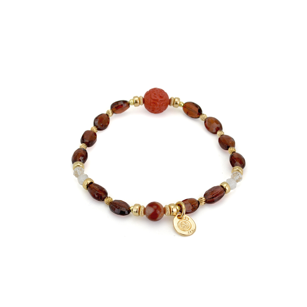 ガーネット+水晶+朱砂+ゴールドヘマタイト+12KGF+14KGF+オリジナルメダルチャーム