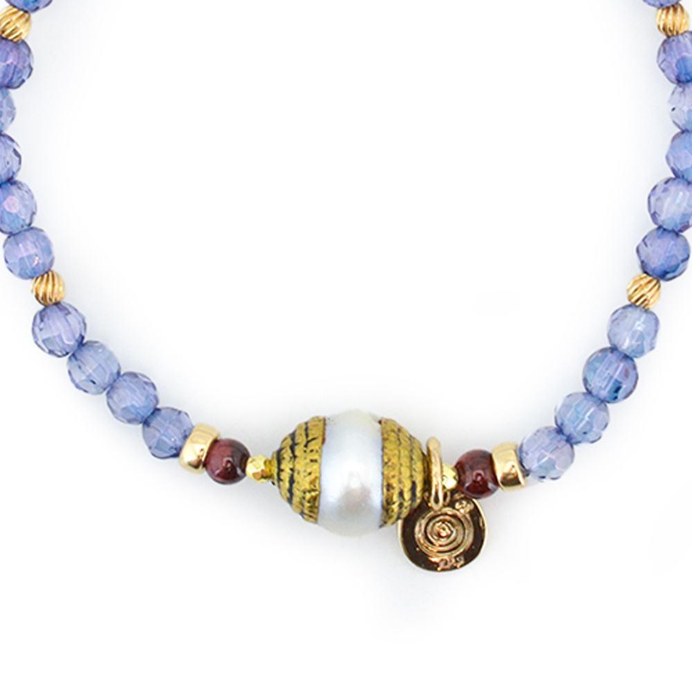 美の象徴とされ、女性のステータスを上げるといわれているパール、信頼と愛の石と呼ばれ、持ち主にポジティブなパワーを与え成功へと導くとされるガーネット、身につける人の潜在能力を引き出し、強迫観念や心理的な圧迫を取り除くとされるコスモオーラなどを組み合わせたブレスレットです。