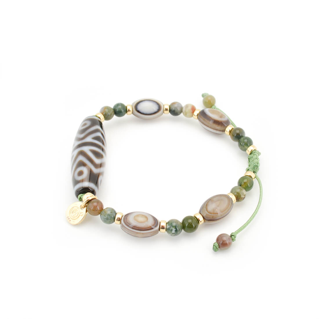 安らぎ・長壽・富・健康をもたらす石とされるモスアゲートを組み合わせました。
