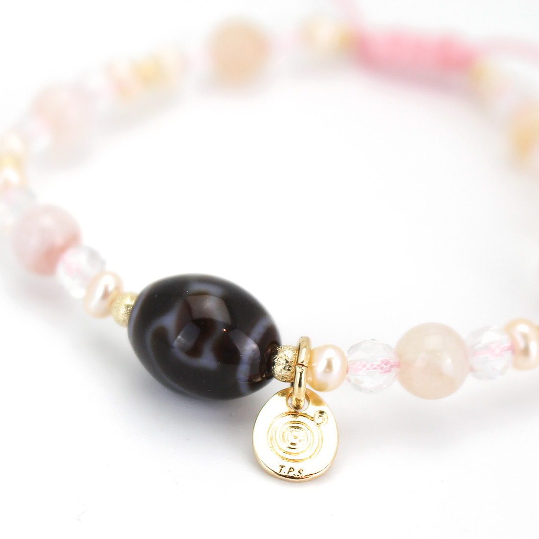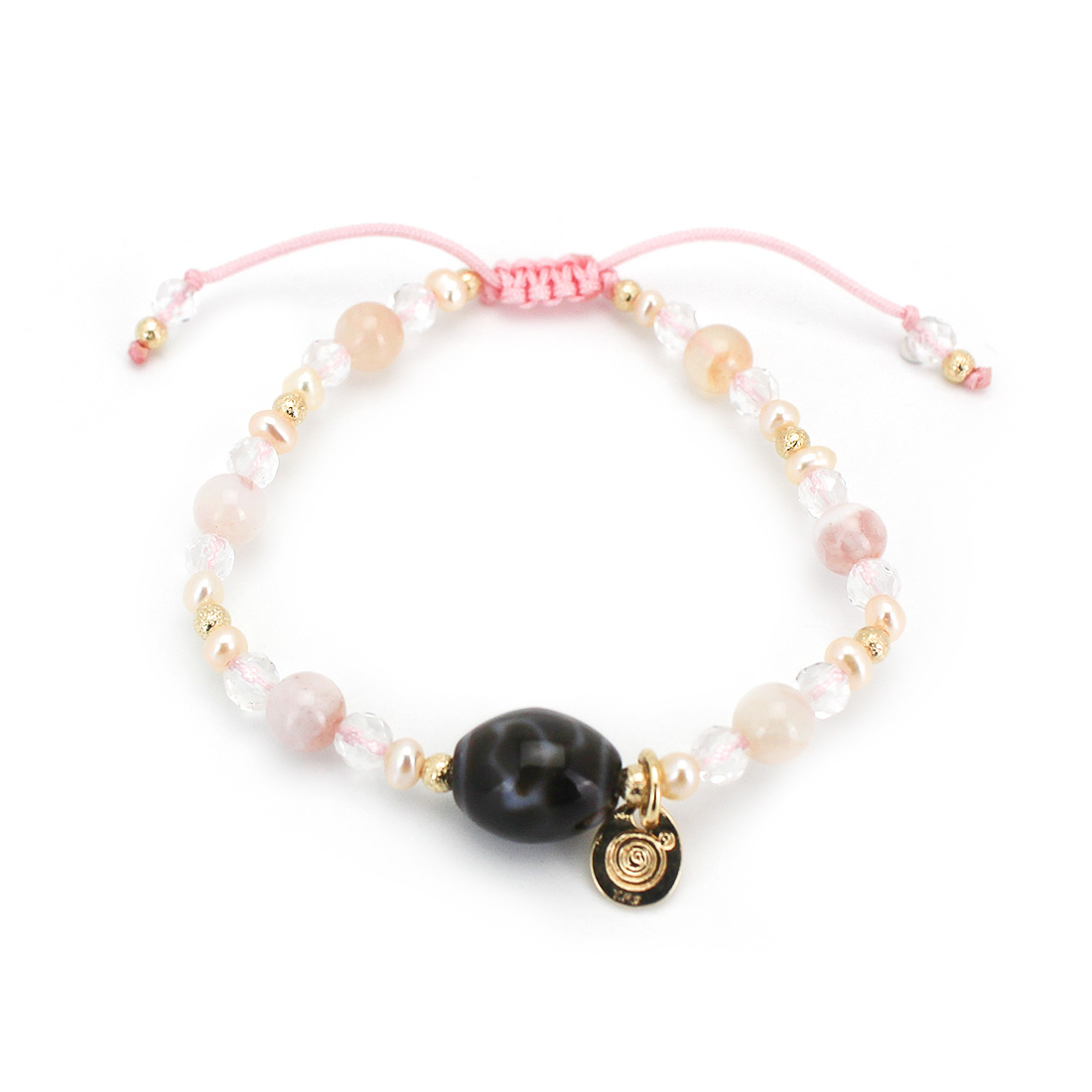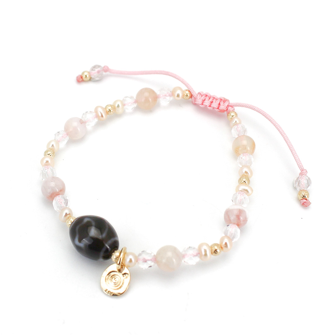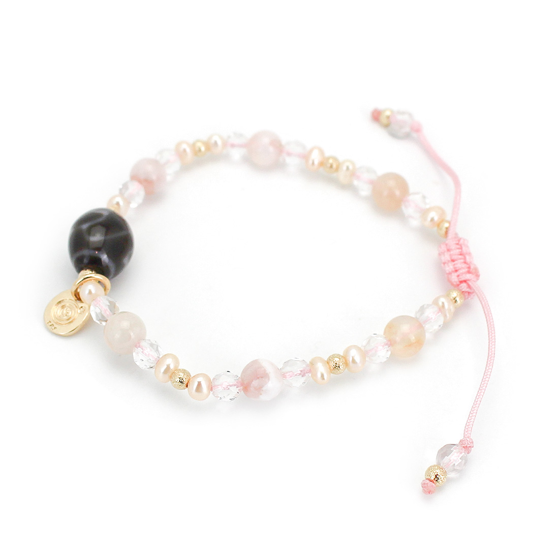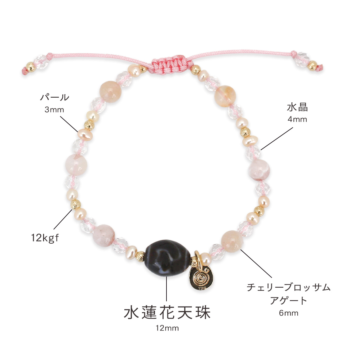 チェリーブロッサムアゲート+水晶+パール+12KGF+オリジナルメダルチャーム