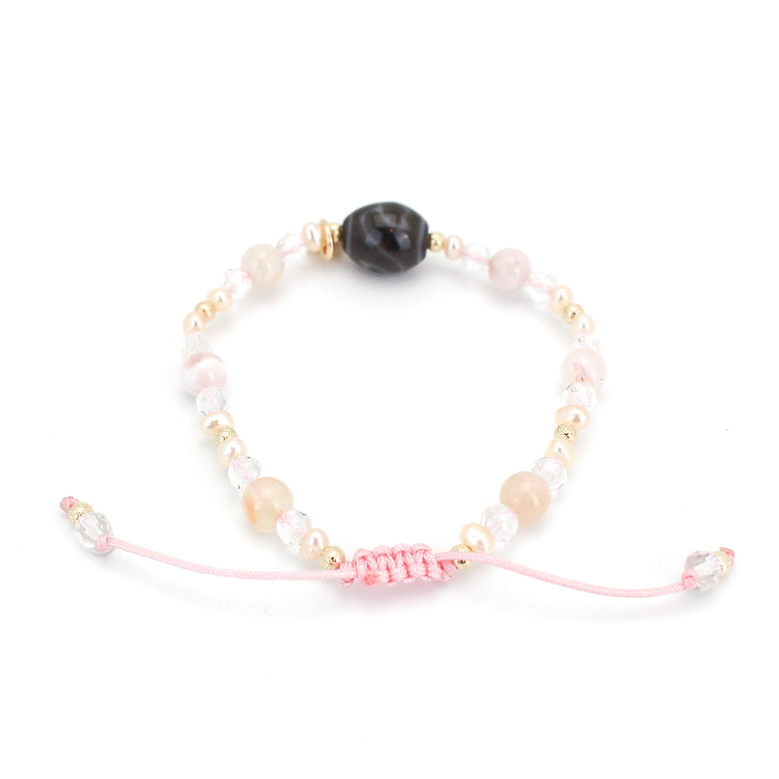 持ち主にポジティブなパワーを与え成功へ他者の思惑に染まらず自分らしく生きられ病魔を寄せつけず、健康になるといわれている水蓮花天珠に、潜在能力を活性化させ、魔除けの作用を持つ万能パワーストーンとされる水晶や、美の象徴とされ、女性のステータスを上げるといわれているパールなどを組み合わせたブレスレットです。