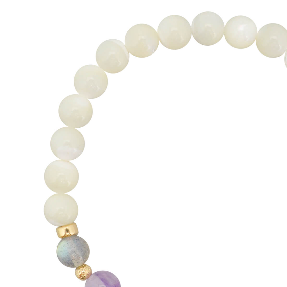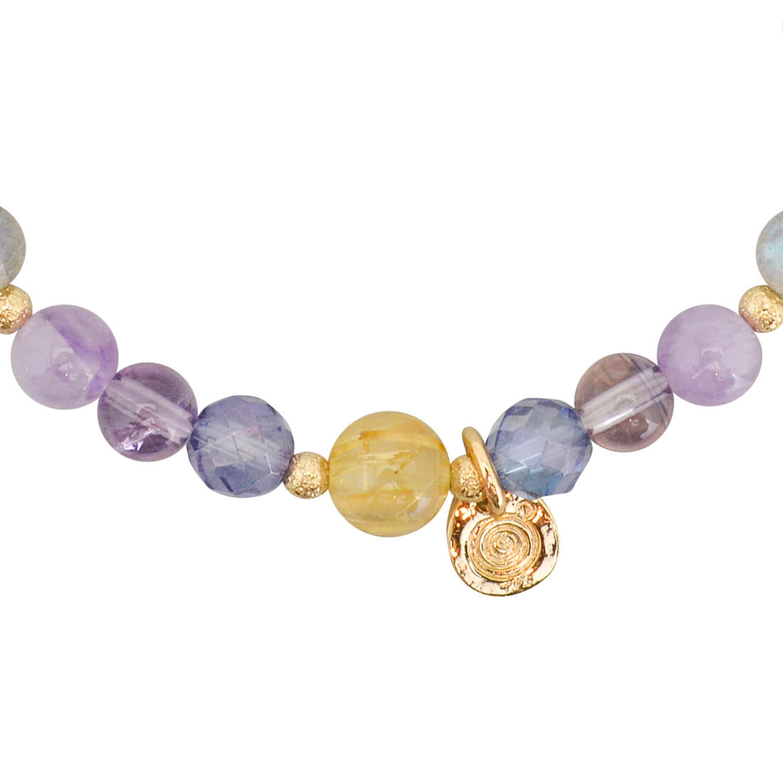 ルチルクォーツ+マザーオブパール+コスモオーラ+アメシスト+ラベンダーアメシスト+ラブラドライト+12KGF+オリジナルメダルチャーム