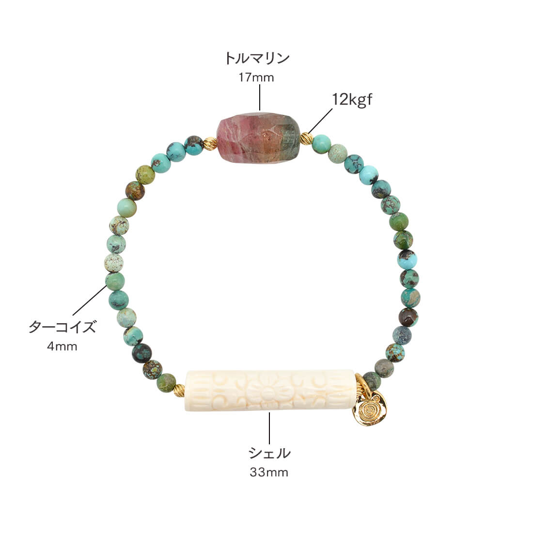 シェル+トルマリン+ターコイズ+12KGF+オリジナルメダルチャーム