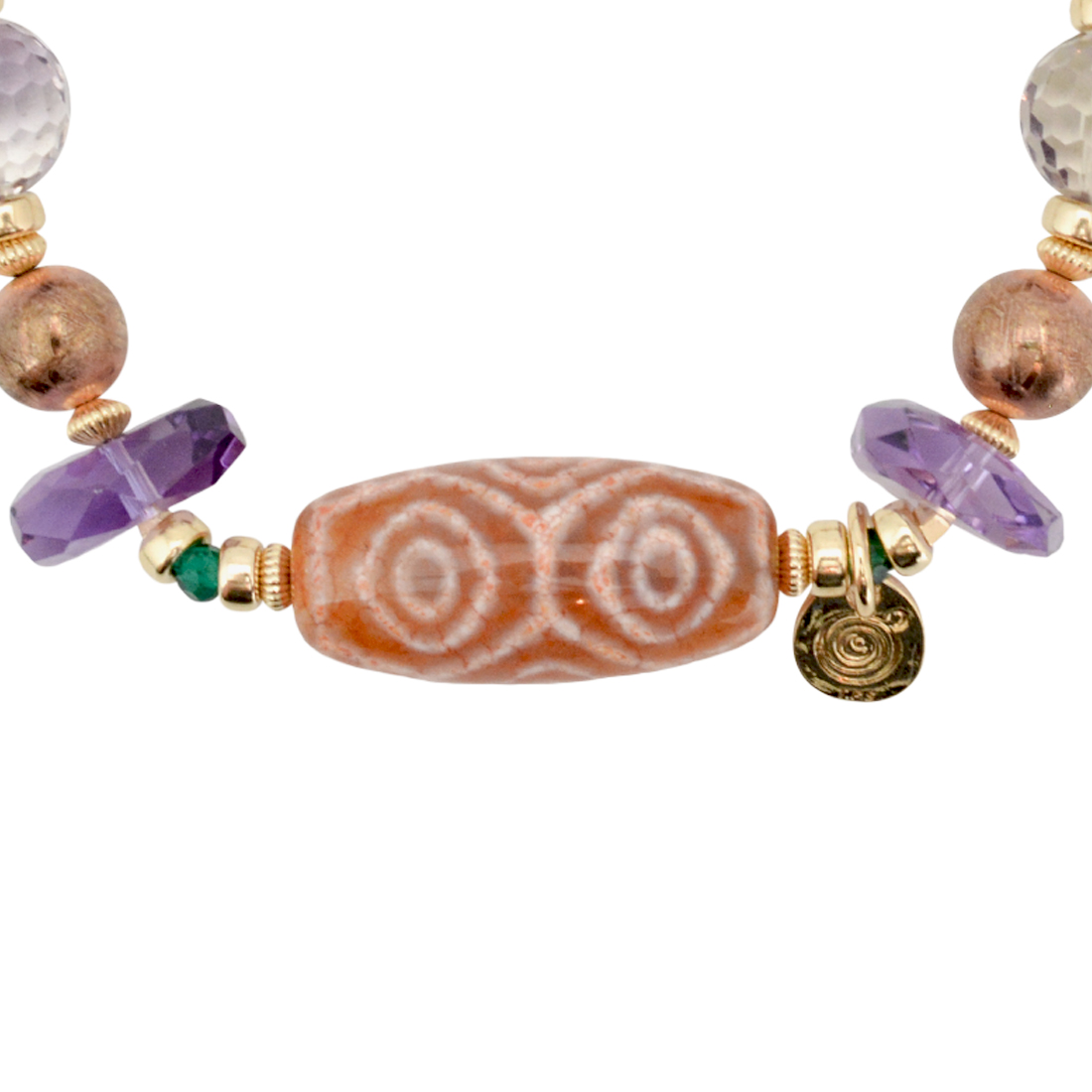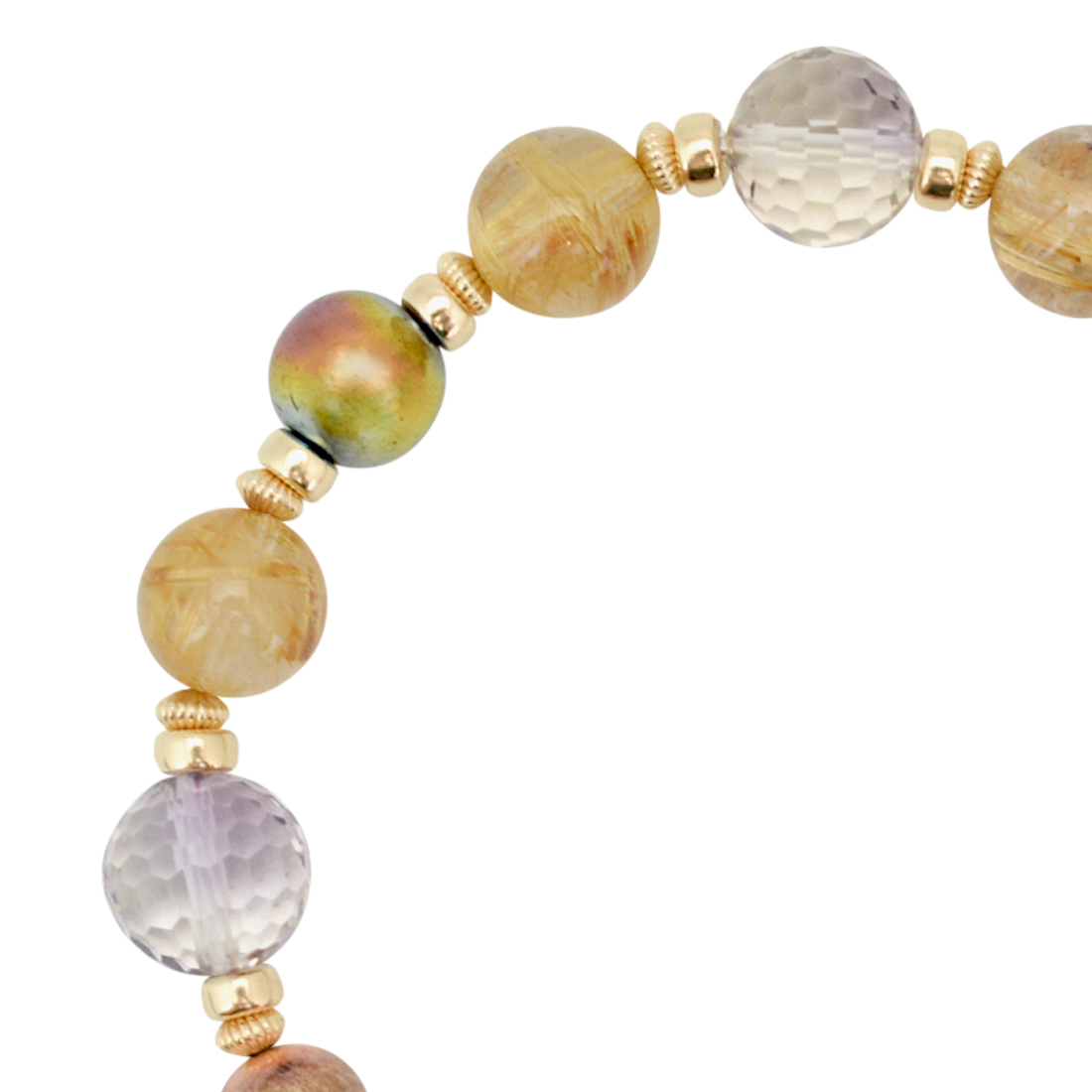 グリーンスピネル+アメトリン+ギベオン+ルチルクォーツ+ピーコックヘマタイト+ヘマタイト+12KGF+14KGF+オリジナルメダルチャーム