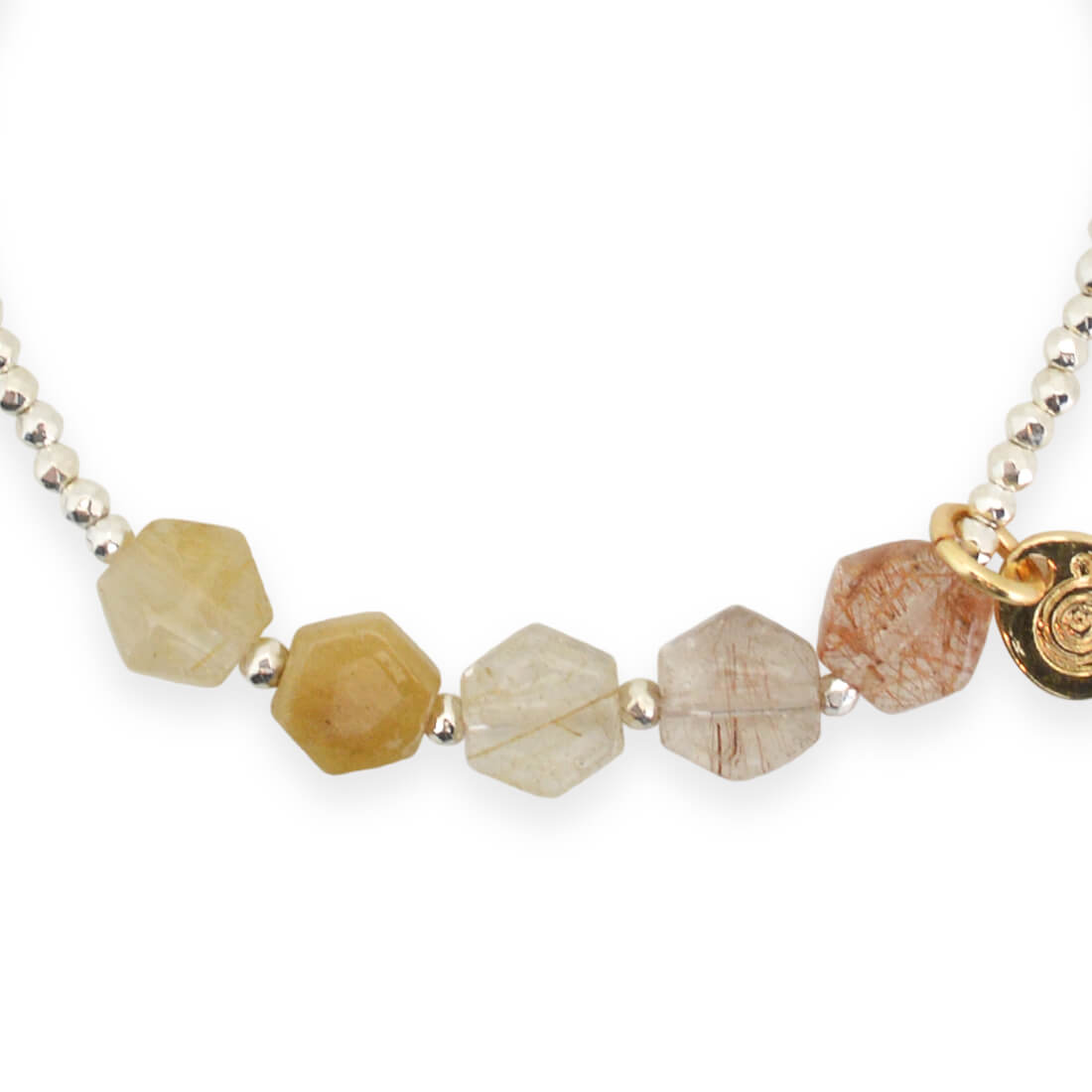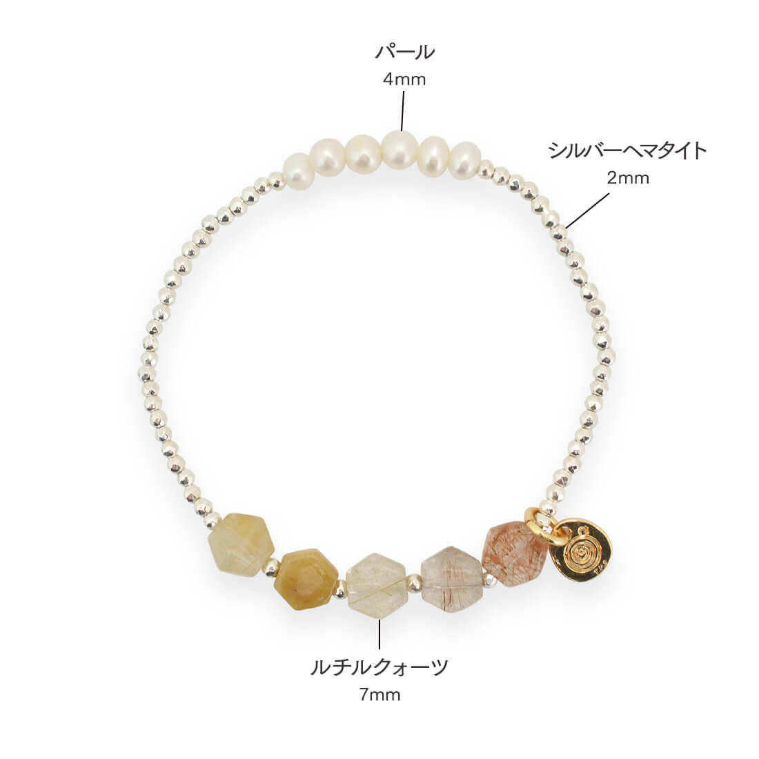 ルチルクォーツ+パール+シルバーヘマタイト+オリジナルメダルチャーム